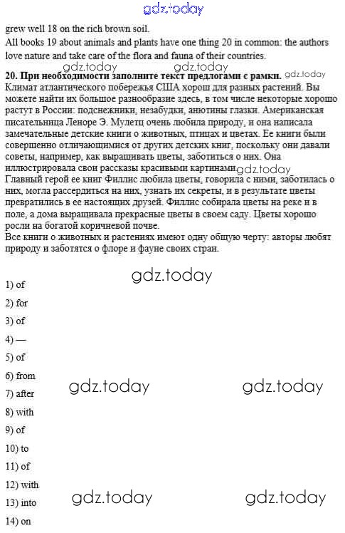 На страницах сайта gdz.today вы найдете учебный и вспомогательный материал, направленный на улучшения знаний школьной программы. ГДЗ - онлайн мир знаний Unit 3. Living Things around Us Решение к тетради №1 20 Рабочей тетради по Английскому языку для 8 класса Афанасьева, Михеева Дрофа Новый курс 2017