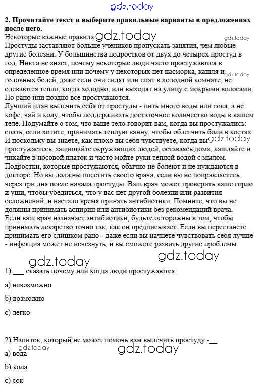 На страницах сайта gdz.today вы найдете учебный и вспомогательный материал, направленный на улучшения знаний школьной программы. ГДЗ - онлайн мир знаний Test 5 Unit 5. Keeping Fit 2 Рабочей тетради по Английскому языку для 8 класса Афанасьева, Михеева Дрофа Новый курс 2017