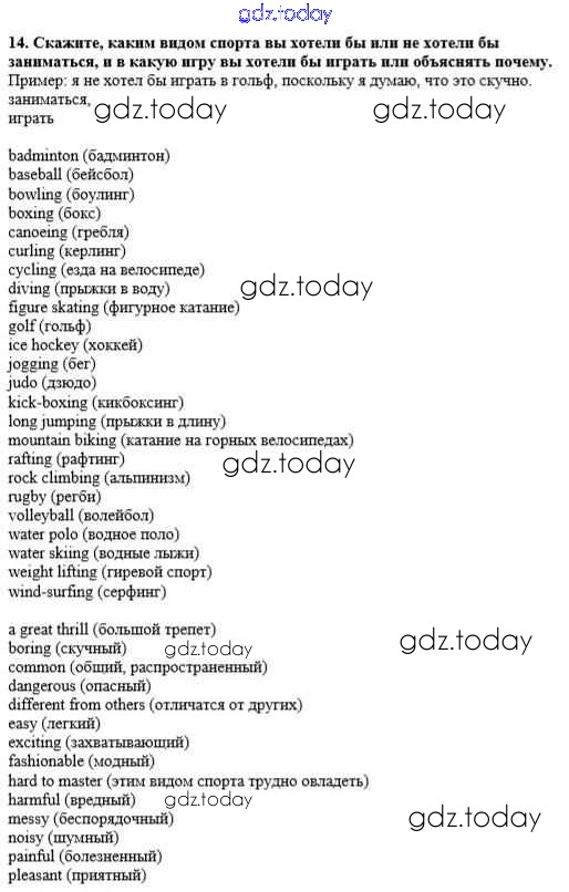На страницах сайта gdz.today вы найдете учебный и вспомогательный материал, направленный на улучшения знаний школьной программы. ГДЗ - онлайн мир знаний Unit 5. Keeping Fit Решение к тетради №2 14 Рабочей тетради по Английскому языку для 8 класса Афанасьева, Михеева Дрофа Новый курс 2017