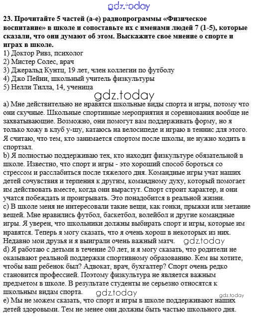 На страницах сайта gdz.today вы найдете учебный и вспомогательный материал, направленный на улучшения знаний школьной программы. ГДЗ - онлайн мир знаний Unit 5. Keeping Fit Решение к тетради №2 23 Рабочей тетради по Английскому языку для 8 класса Афанасьева, Михеева Дрофа Новый курс 2017