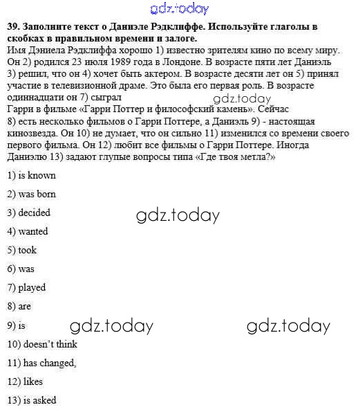 Ответы к Unit 6. Our Favourite Pastimes Решение к тетради №2 39 Рабочей тетради по Английскому языку для 8 класса Афанасьева, Михеева Дрофа Новый курс 2017