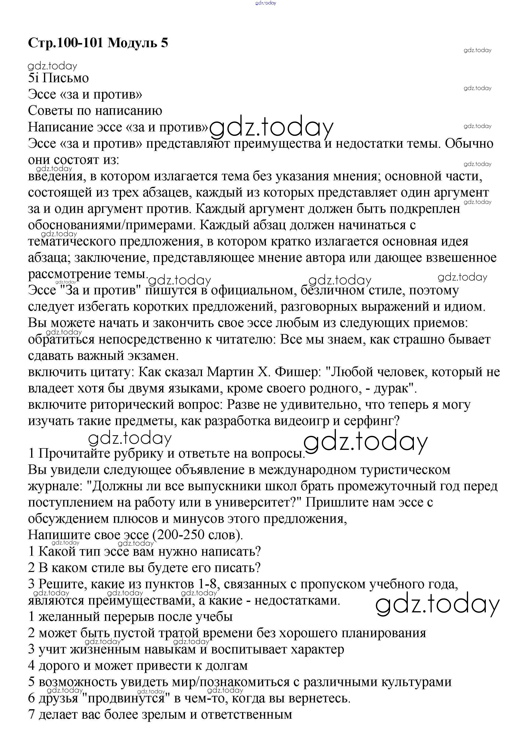 На страницах сайта gdz.today вы найдете учебный и вспомогательный материал, направленный на улучшения знаний школьной программы. ГДЗ - онлайн мир знаний Страницы (решение) 100-101 Учебнику по Английскому языку для 8 класса Баранова, Дули Углубленный уровень Просвещение Starlight 2016