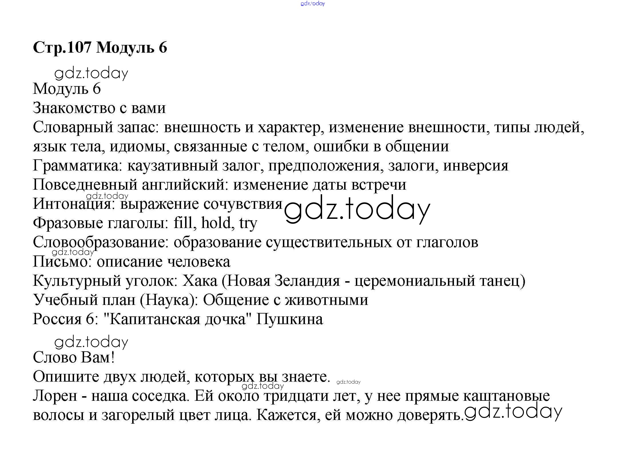Ответы к Страницы (решение) 107 Учебнику по Английскому языку для 8 класса Баранова, Дули Углубленный уровень Просвещение Starlight 2016