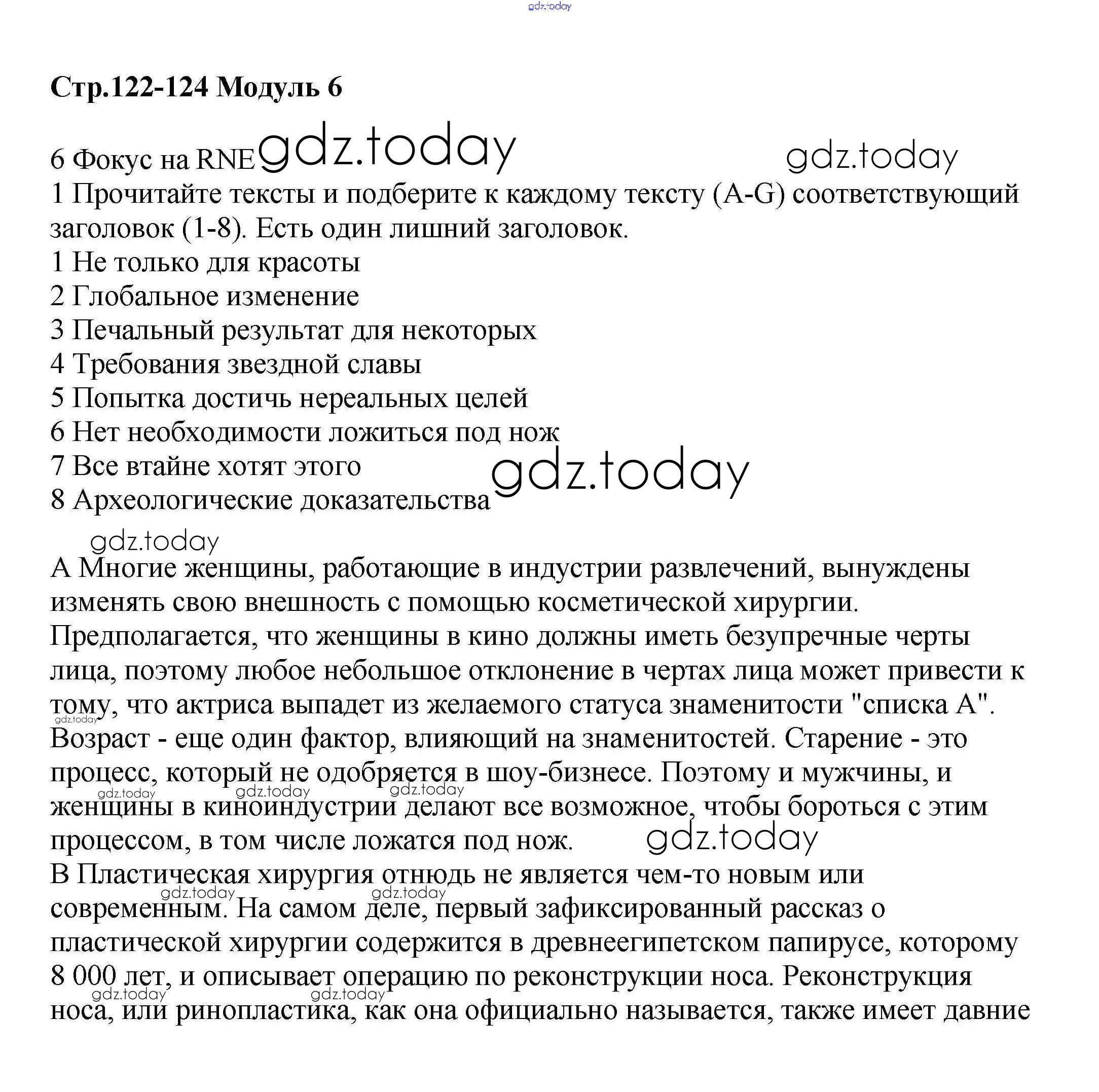 Ответы к Страницы (решение) 122-124 Учебнику по Английскому языку для 8 класса Баранова, Дули Углубленный уровень Просвещение Starlight 2016