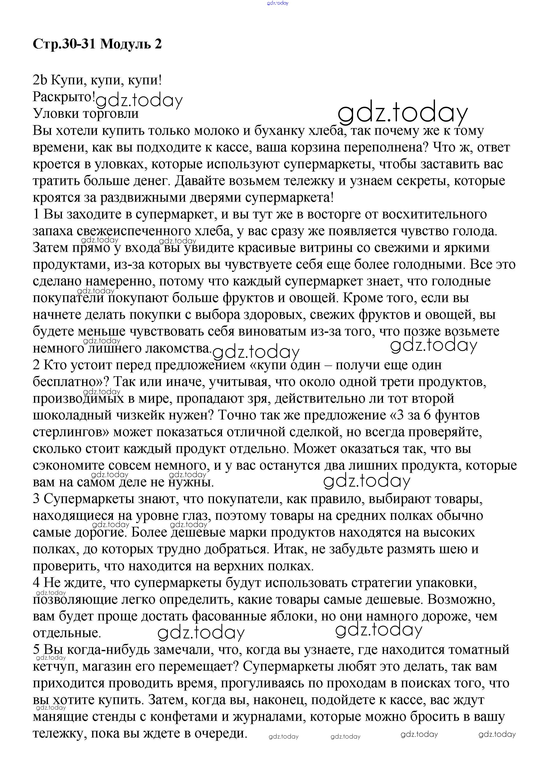 Ответы к Страницы (решение) 30-31 Учебнику по Английскому языку для 8 класса Баранова, Дули Углубленный уровень Просвещение Starlight 2016