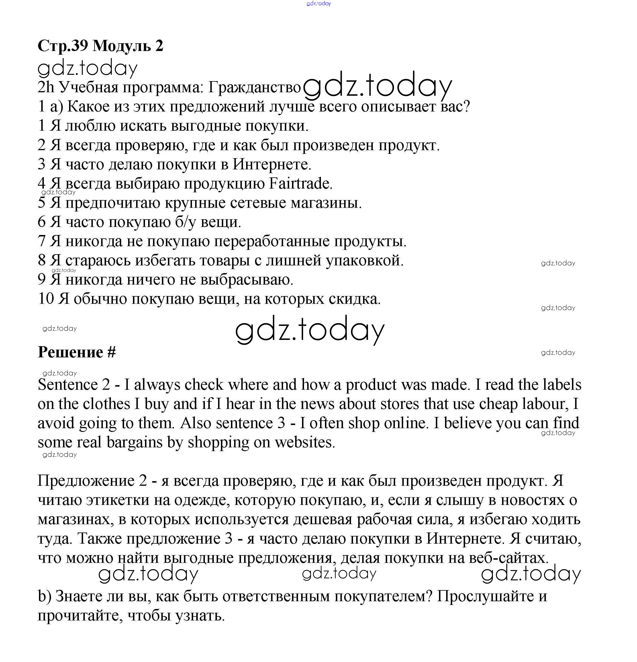 На страницах сайта gdz.today вы найдете учебный и вспомогательный материал, направленный на улучшения знаний школьной программы. ГДЗ - онлайн мир знаний Страницы (решение) 39 Учебнику по Английскому языку для 8 класса Баранова, Дули Углубленный уровень Просвещение Starlight 2016