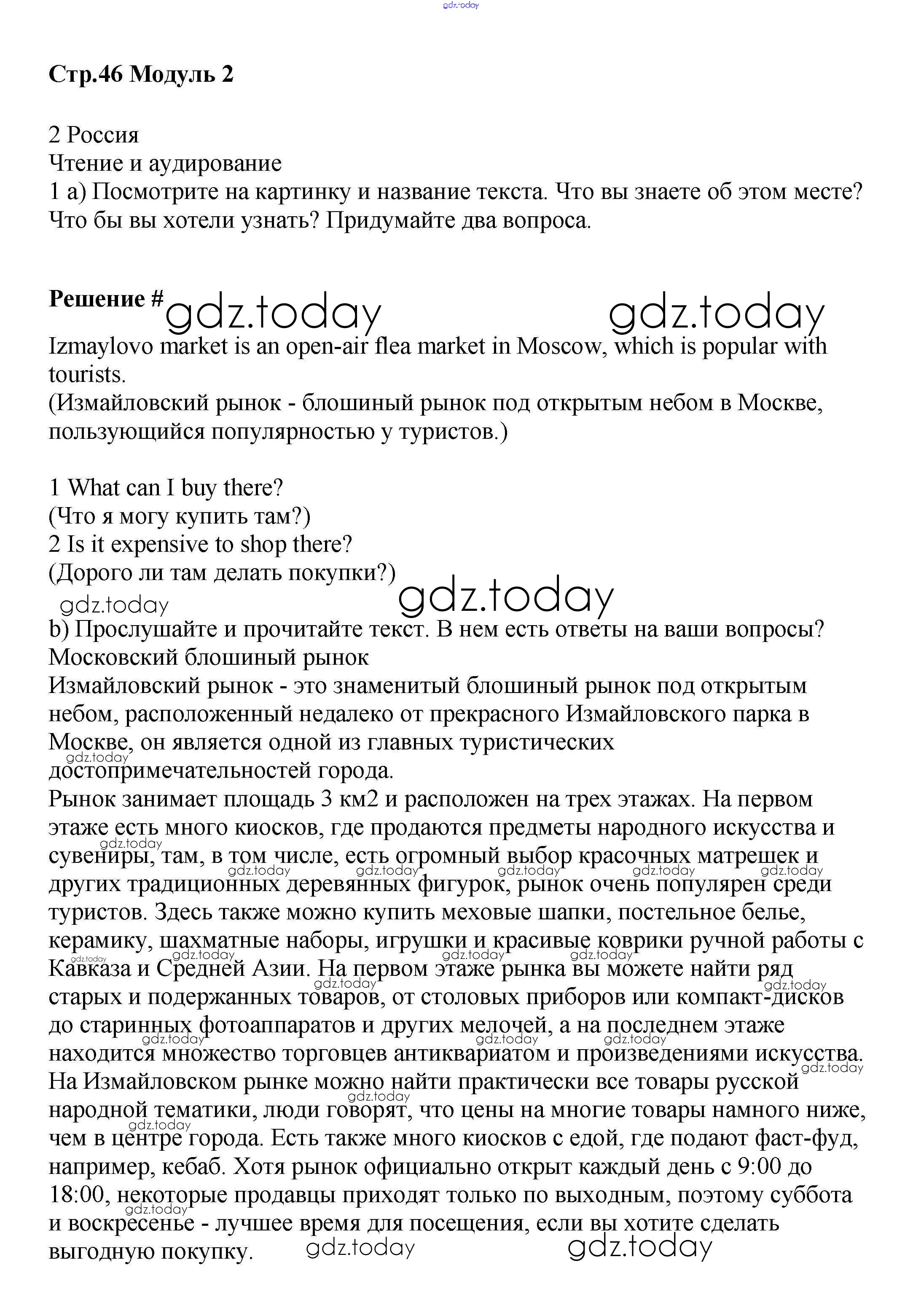 Ответы к Страницы (решение) 46 Учебнику по Английскому языку для 8 класса Баранова, Дули Углубленный уровень Просвещение Starlight 2016