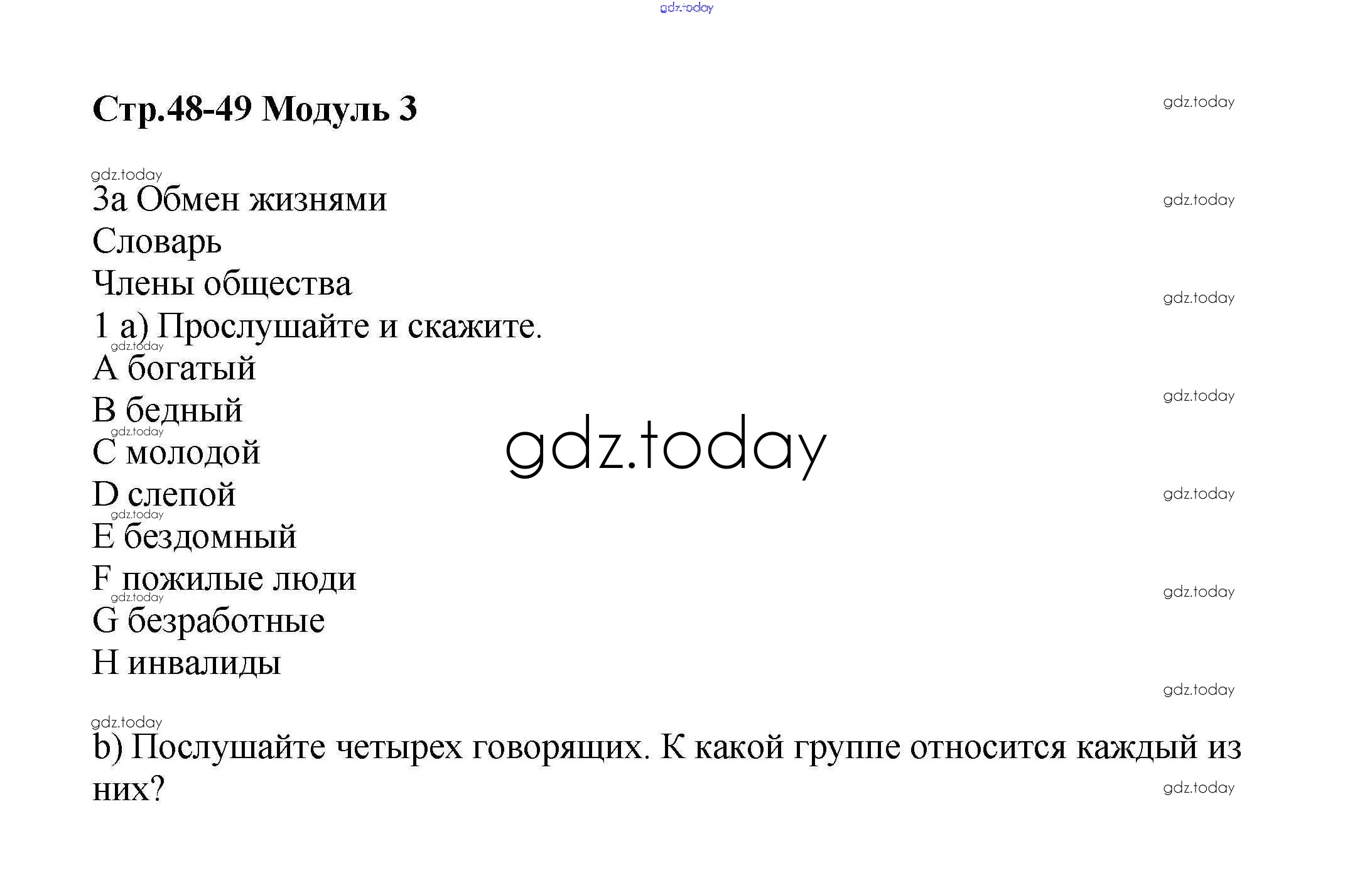 На страницах сайта gdz.today вы найдете учебный и вспомогательный материал, направленный на улучшения знаний школьной программы. ГДЗ - онлайн мир знаний Страницы (решение) 48-49 Учебнику по Английскому языку для 8 класса Баранова, Дули Углубленный уровень Просвещение Starlight 2016