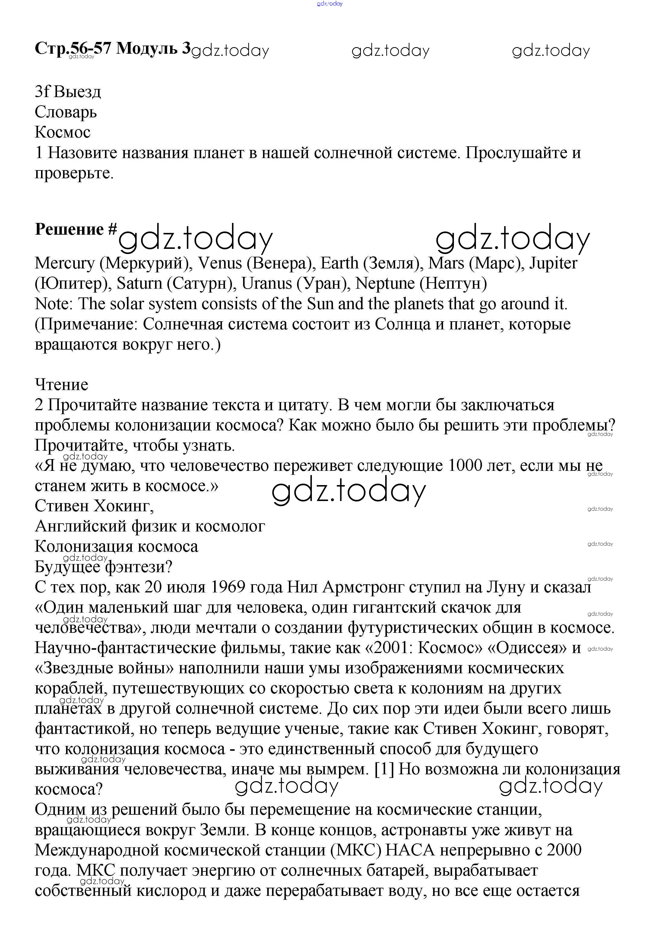 Ответы к Страницы (решение) 56-57 Учебнику по Английскому языку для 8 класса Баранова, Дули Углубленный уровень Просвещение Starlight 2016