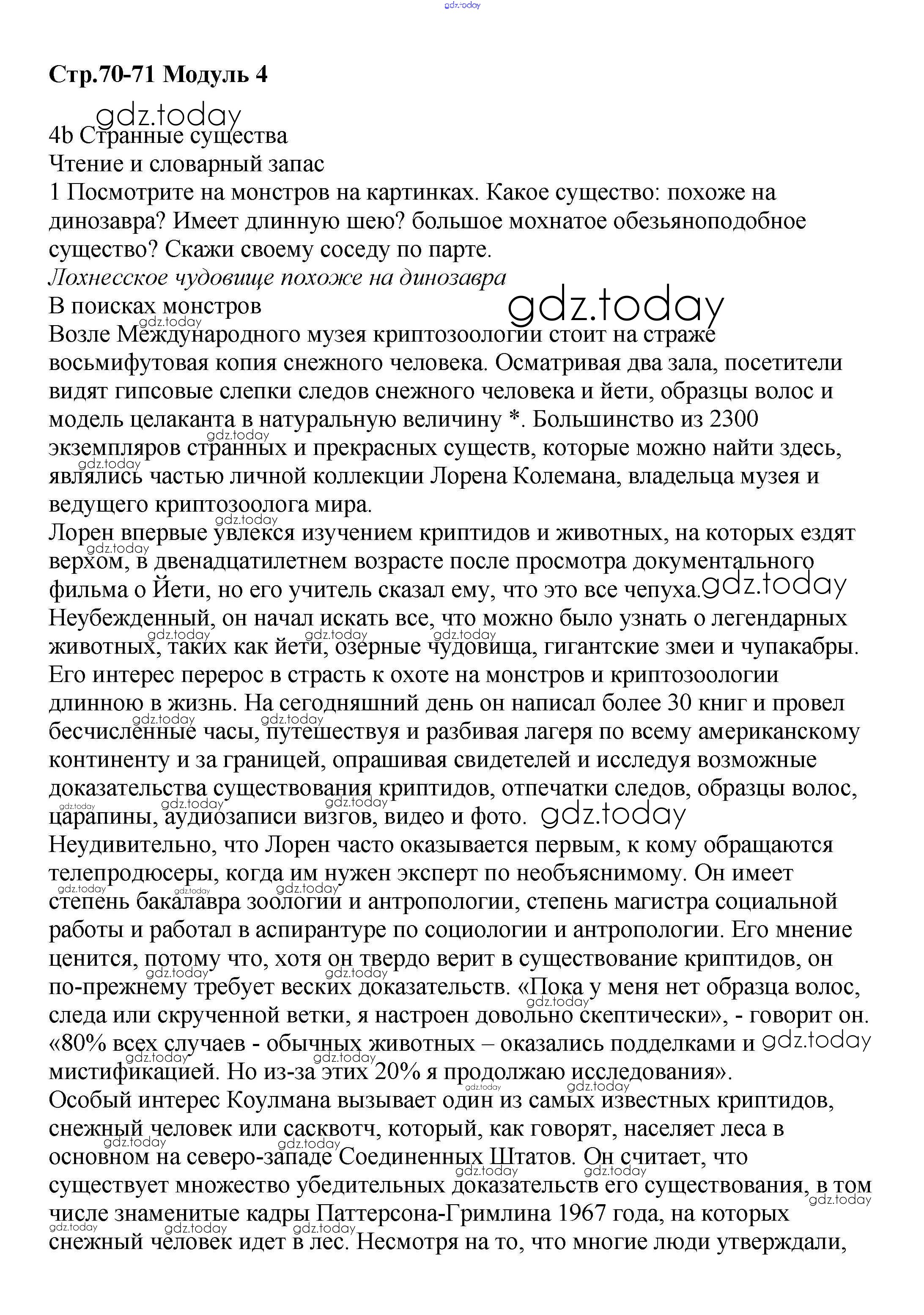 Ответы к Страницы (решение) 70-71 Учебнику по Английскому языку для 8 класса Баранова, Дули Углубленный уровень Просвещение Starlight 2016