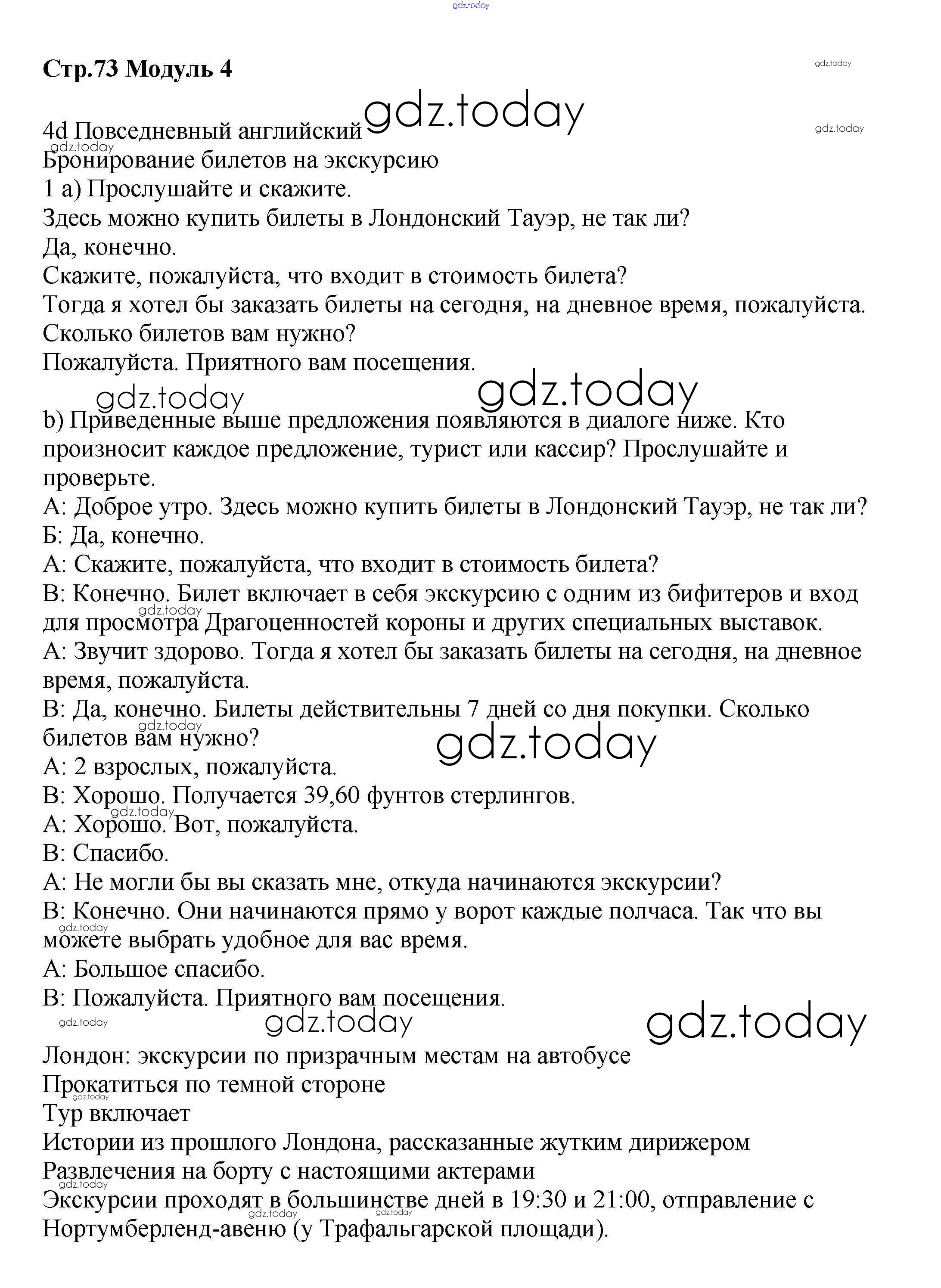 Ответы к Страницы (решение) 73 Учебнику по Английскому языку для 8 класса Баранова, Дули Углубленный уровень Просвещение Starlight 2016