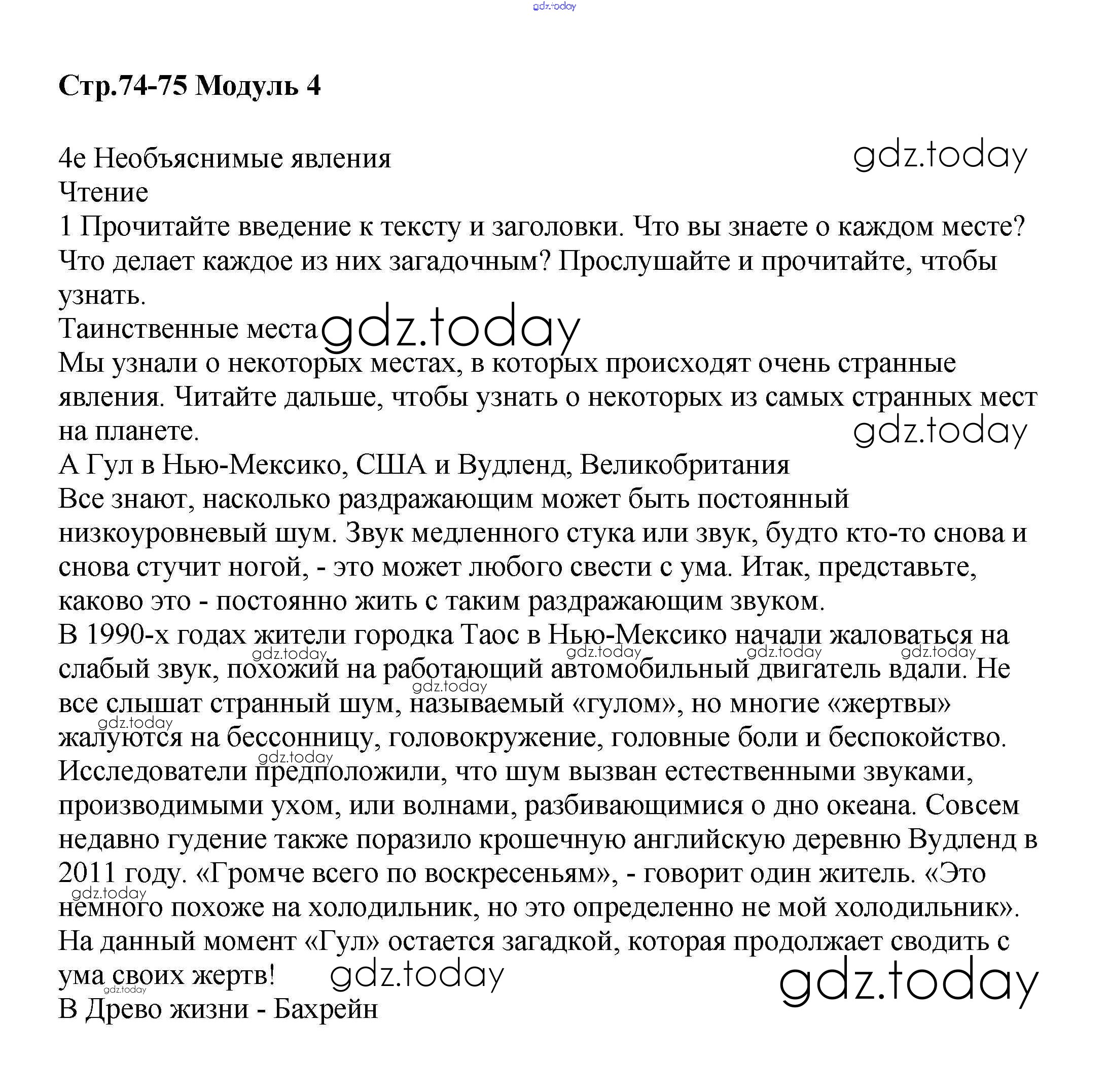 Ответы к Страницы (решение) 74-75 Учебнику по Английскому языку для 8 класса Баранова, Дули Углубленный уровень Просвещение Starlight 2016