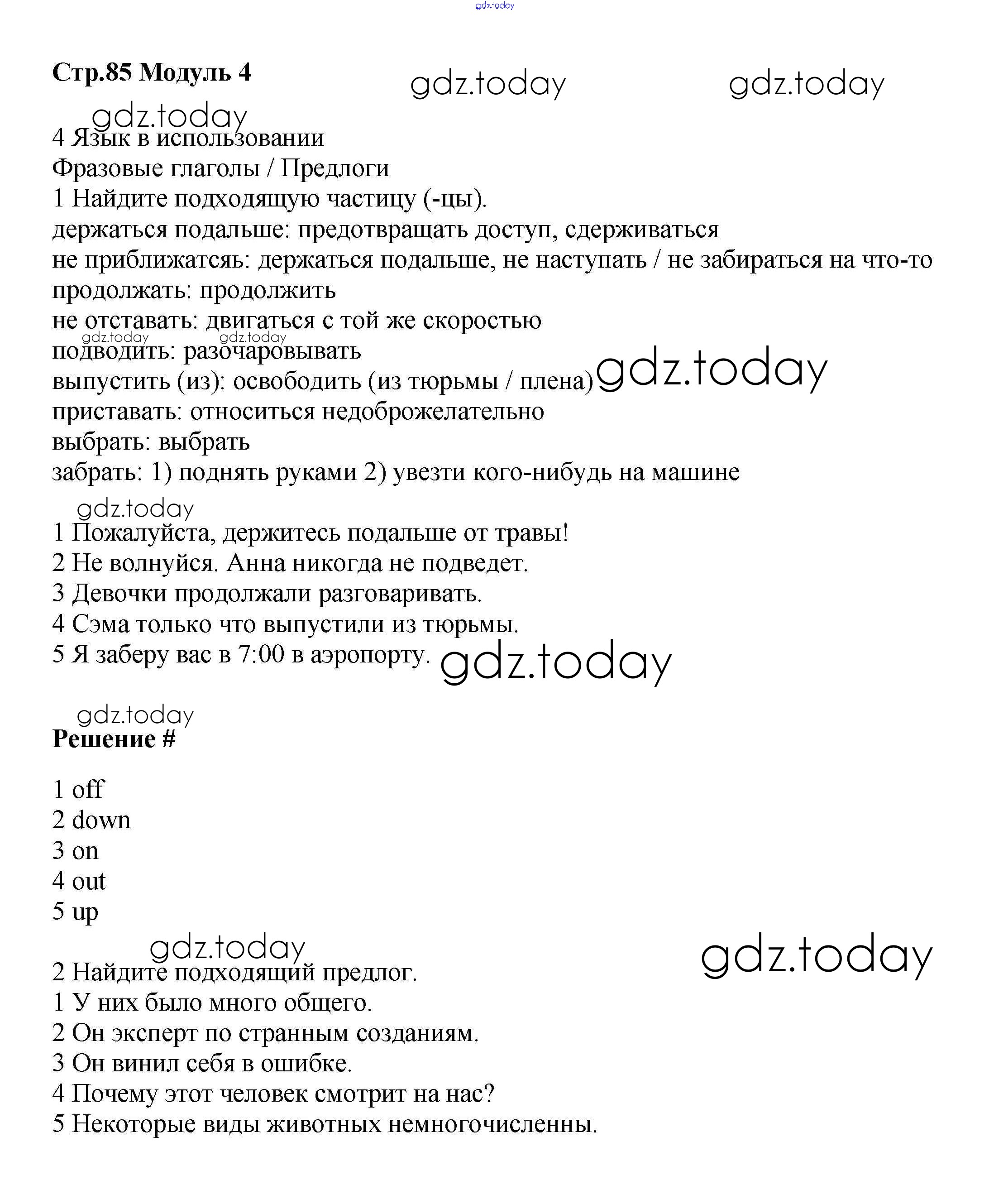 Ответы к Страницы (решение) 85 Учебнику по Английскому языку для 8 класса Баранова, Дули Углубленный уровень Просвещение Starlight 2016