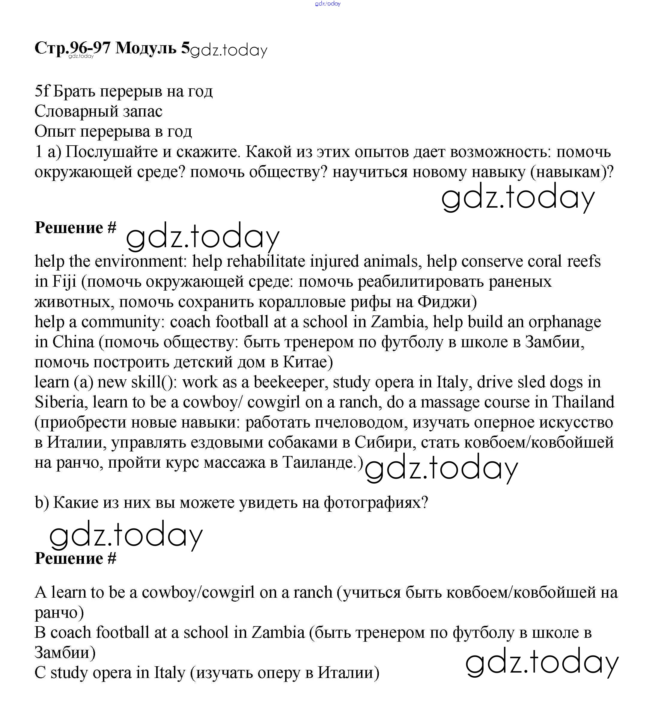 Ответы к Страницы (решение) 96-97 Учебнику по Английскому языку для 8 класса Баранова, Дули Углубленный уровень Просвещение Starlight 2016
