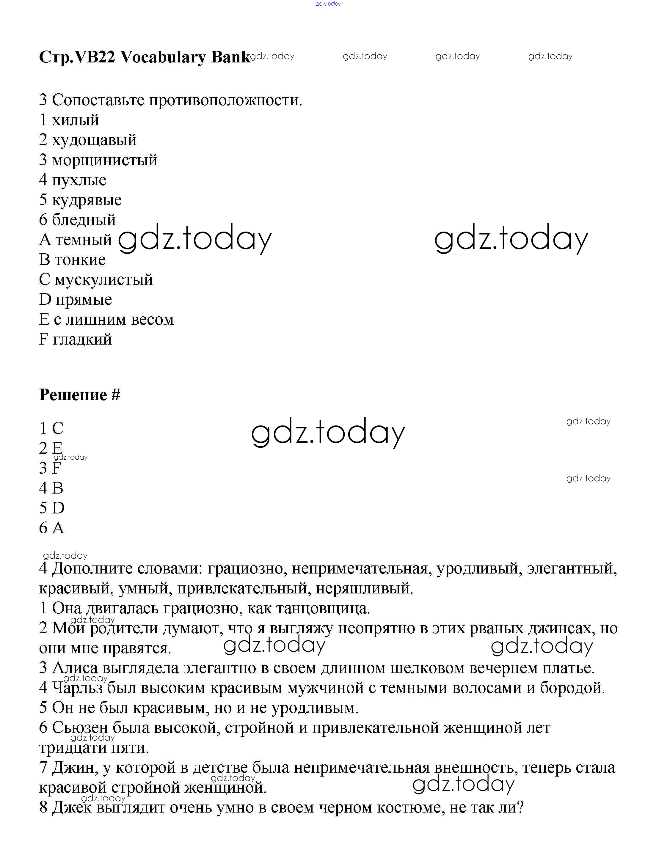 Ответы к Vocabulary Bank (решение) VB22 Учебнику по Английскому языку для 8 класса Баранова, Дули Углубленный уровень Просвещение Starlight 2016