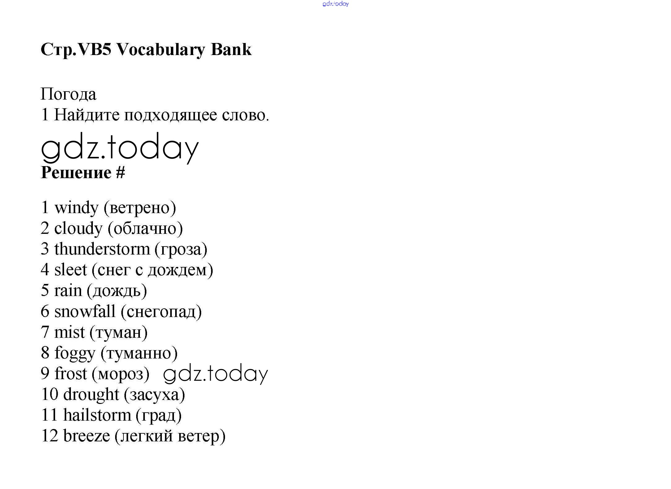 Ответы к Vocabulary Bank (решение) VB5 Учебнику по Английскому языку для 8 класса Баранова, Дули Углубленный уровень Просвещение Starlight 2016