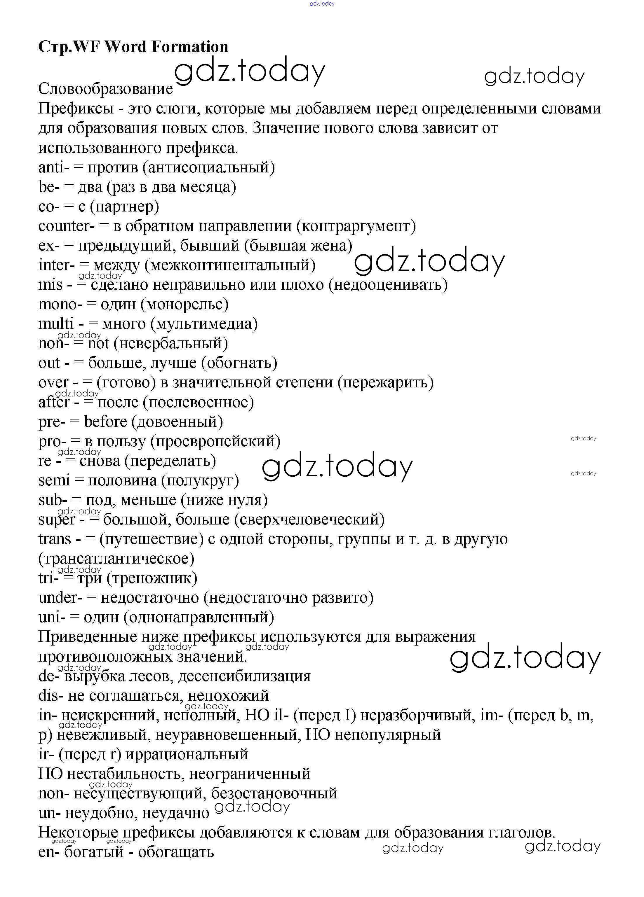 На страницах сайта gdz.today вы найдете учебный и вспомогательный материал, направленный на улучшения знаний школьной программы. ГДЗ - онлайн мир знаний Word Formation (решение) WF1-WF3 Учебнику по Английскому языку для 8 класса Баранова, Дули Углубленный уровень Просвещение Starlight 2016