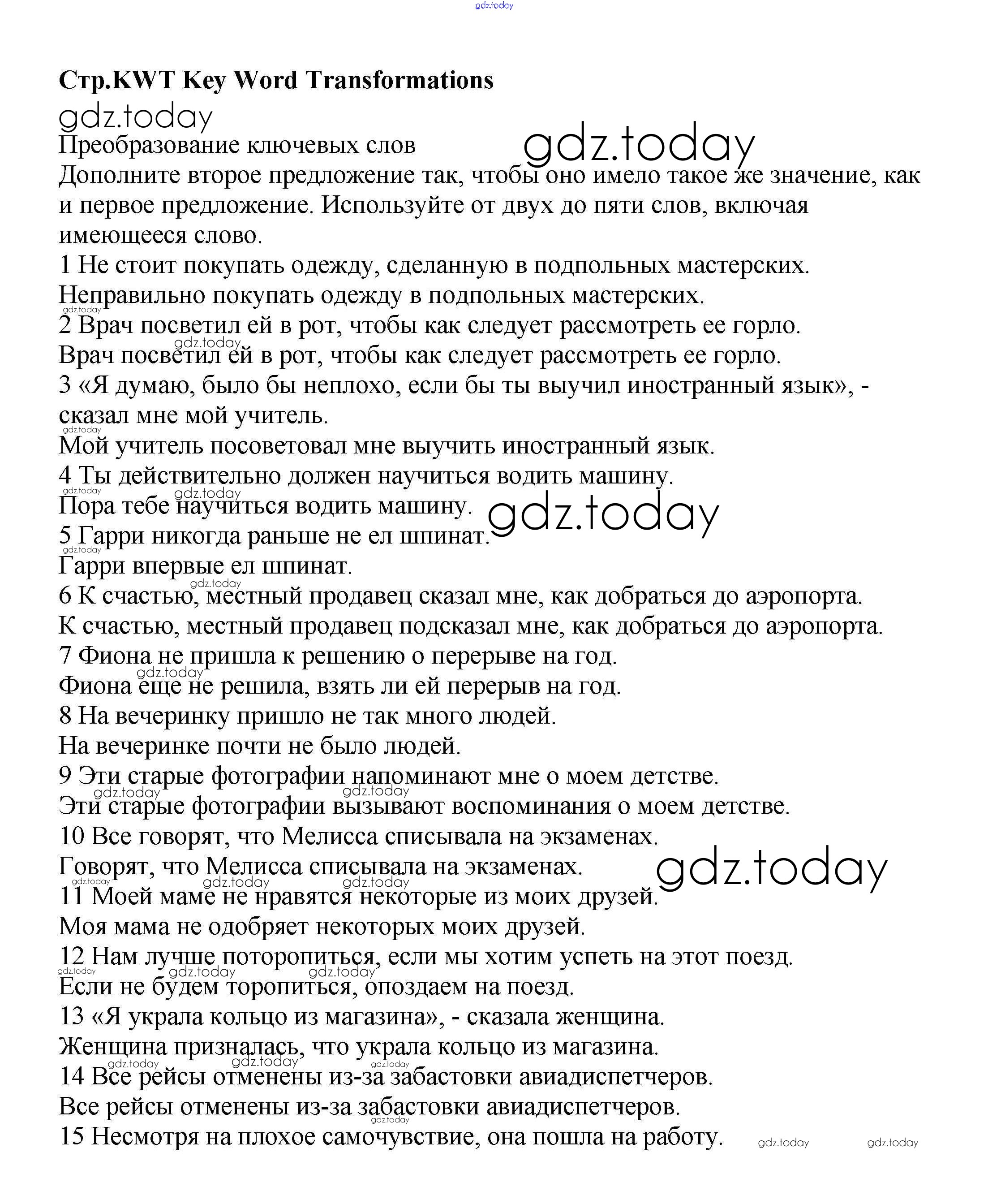 На страницах сайта gdz.today вы найдете учебный и вспомогательный материал, направленный на улучшения знаний школьной программы. ГДЗ - онлайн мир знаний Key Word Transformations (решение) KWT1-KWT3 Учебнику по Английскому языку для 8 класса Баранова, Дули Углубленный уровень Просвещение Starlight 2016