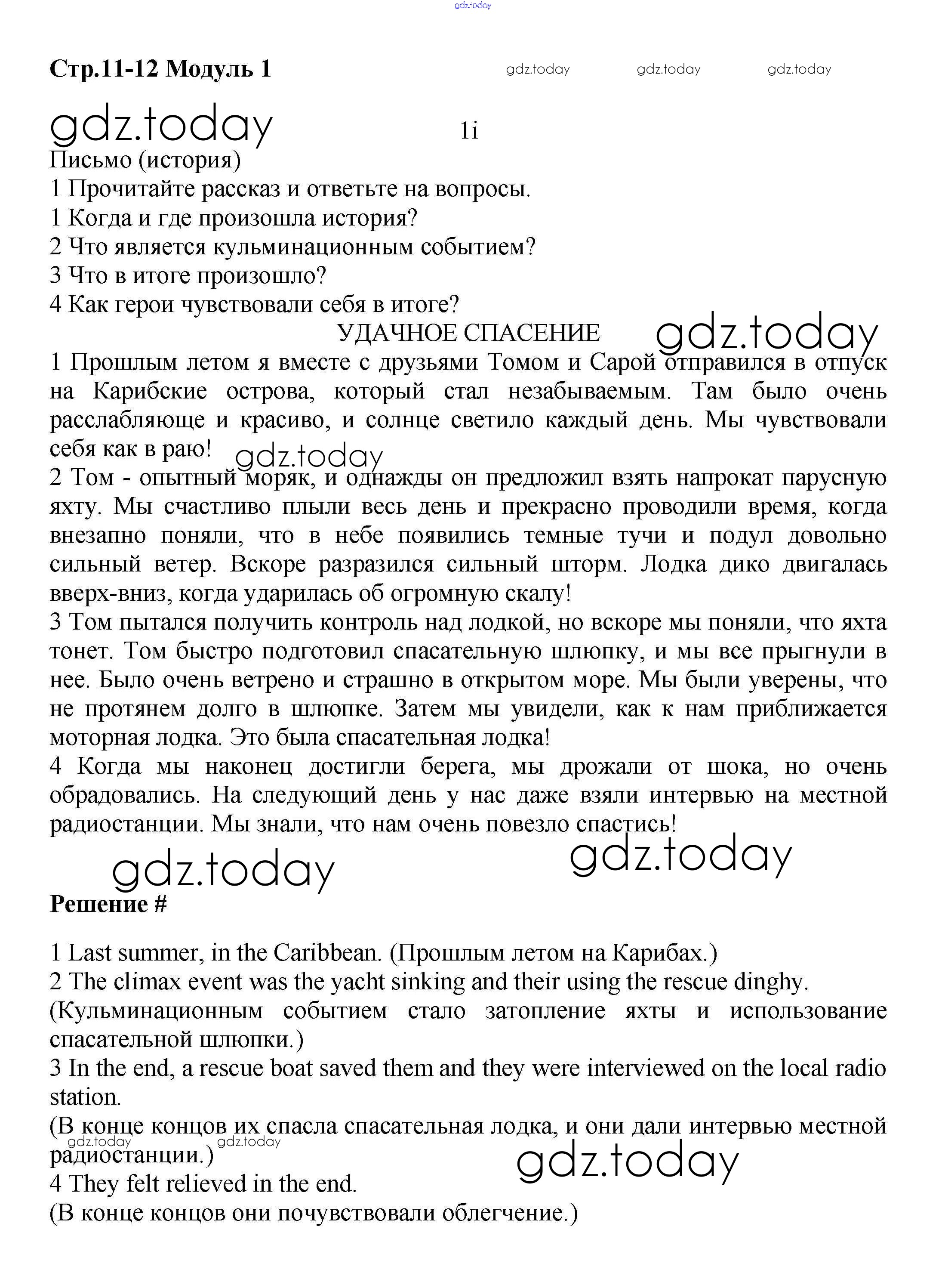 Ответы к Страницы (решение) 11-12 Рабочей тетради по Английскому языку для 8 класса Баранова, Дули Углубленный уровень Просвещение Starlight 2015