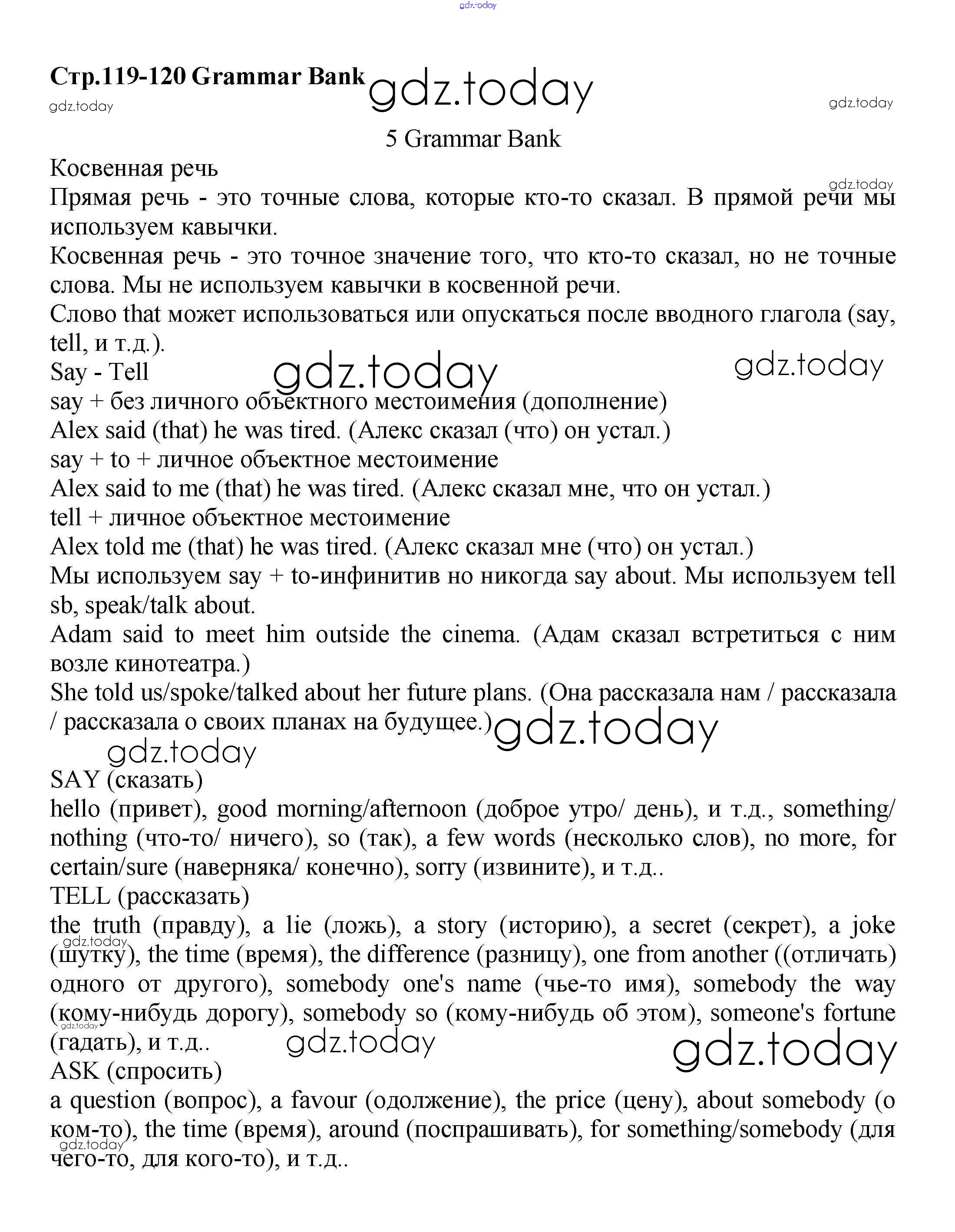 На страницах сайта gdz.today вы найдете учебный и вспомогательный материал, направленный на улучшения знаний школьной программы. ГДЗ - онлайн мир знаний Страницы (решение) 119-120 Рабочей тетради по Английскому языку для 8 класса Баранова, Дули Углубленный уровень Просвещение Starlight 2015
