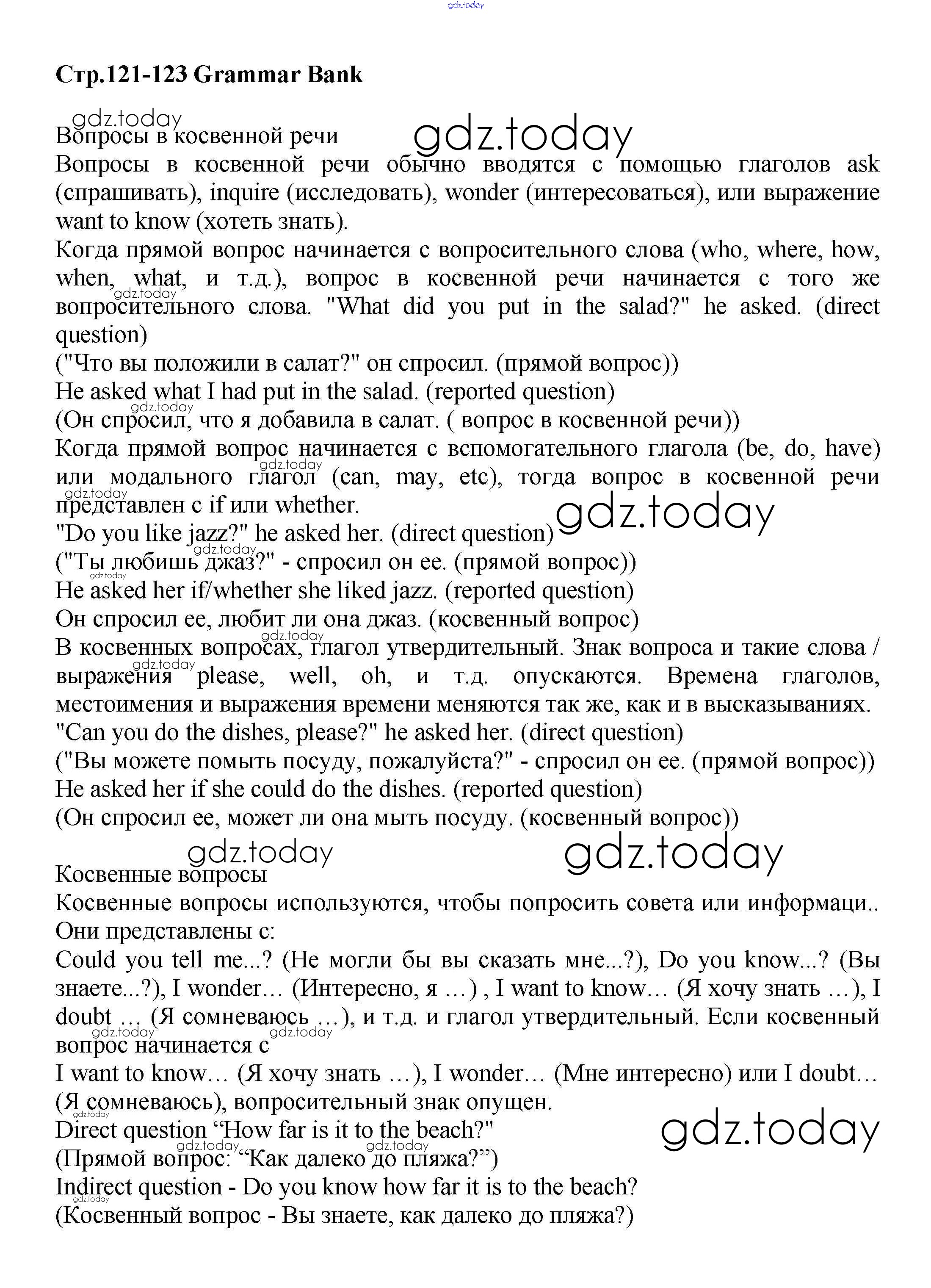 На страницах сайта gdz.today вы найдете учебный и вспомогательный материал, направленный на улучшения знаний школьной программы. ГДЗ - онлайн мир знаний Страницы (решение) 121-123 Рабочей тетради по Английскому языку для 8 класса Баранова, Дули Углубленный уровень Просвещение Starlight 2015
