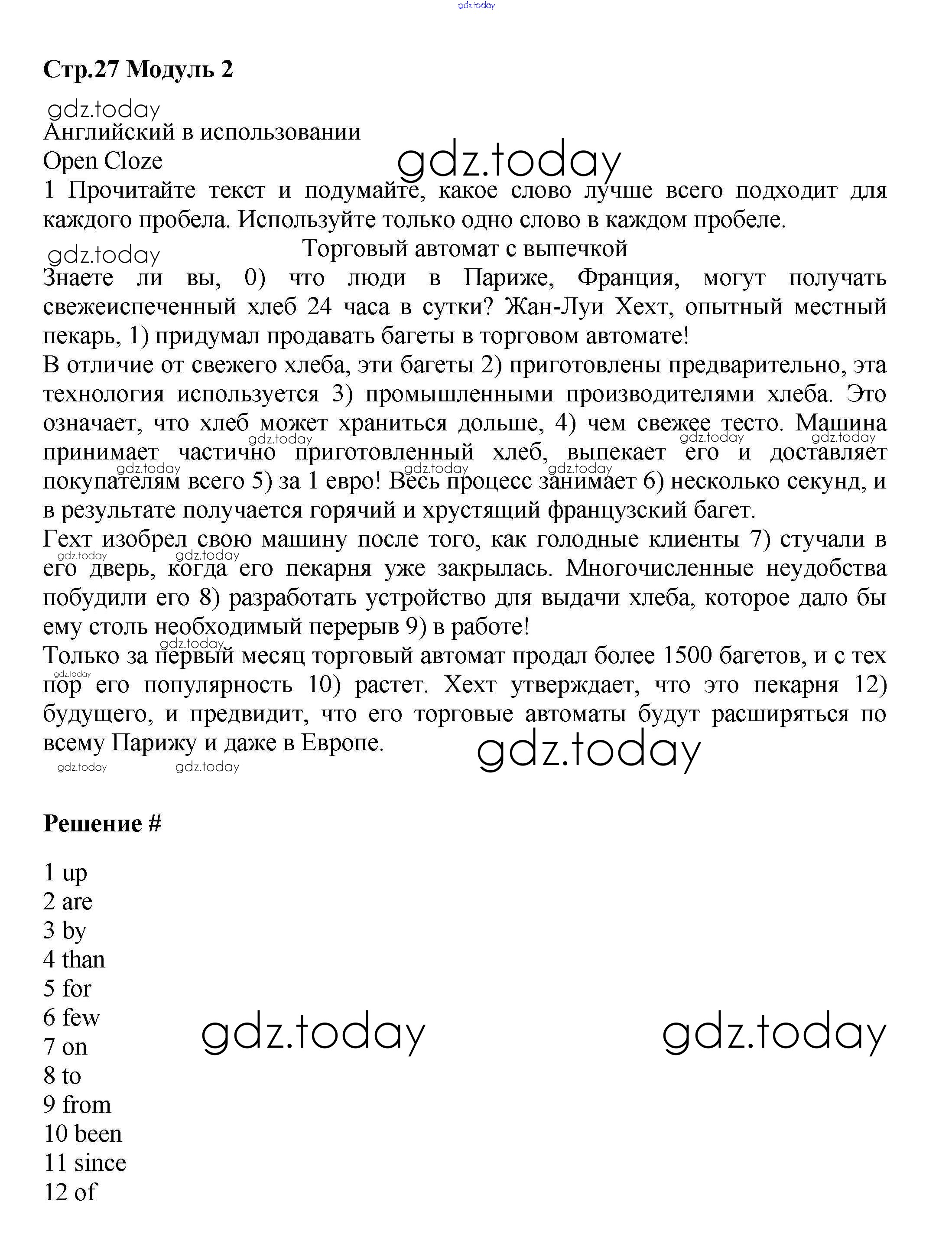 Ответы к Страницы (решение) 27 Рабочей тетради по Английскому языку для 8 класса Баранова, Дули Углубленный уровень Просвещение Starlight 2015