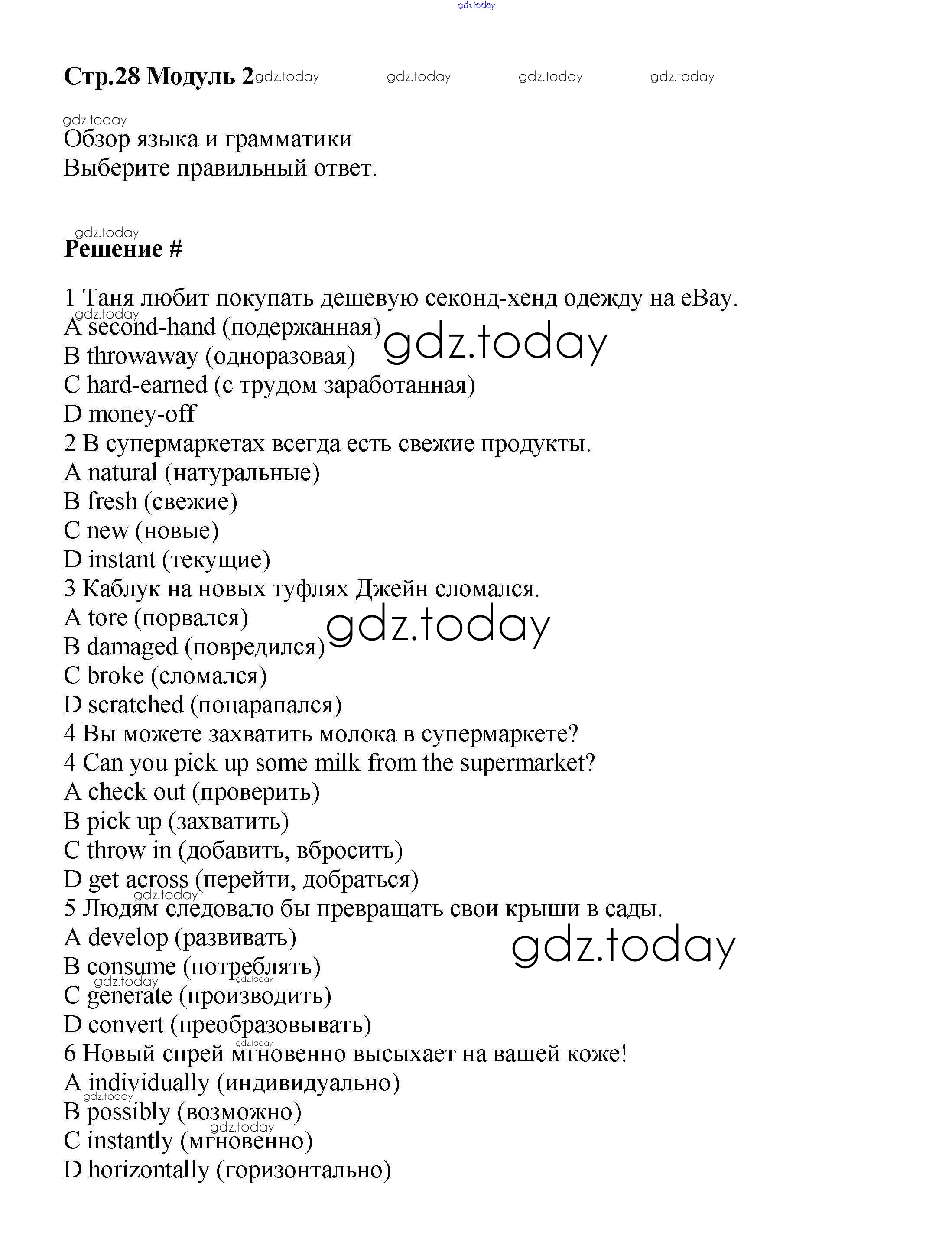 Ответы к Страницы (решение) 28 Рабочей тетради по Английскому языку для 8 класса Баранова, Дули Углубленный уровень Просвещение Starlight 2015