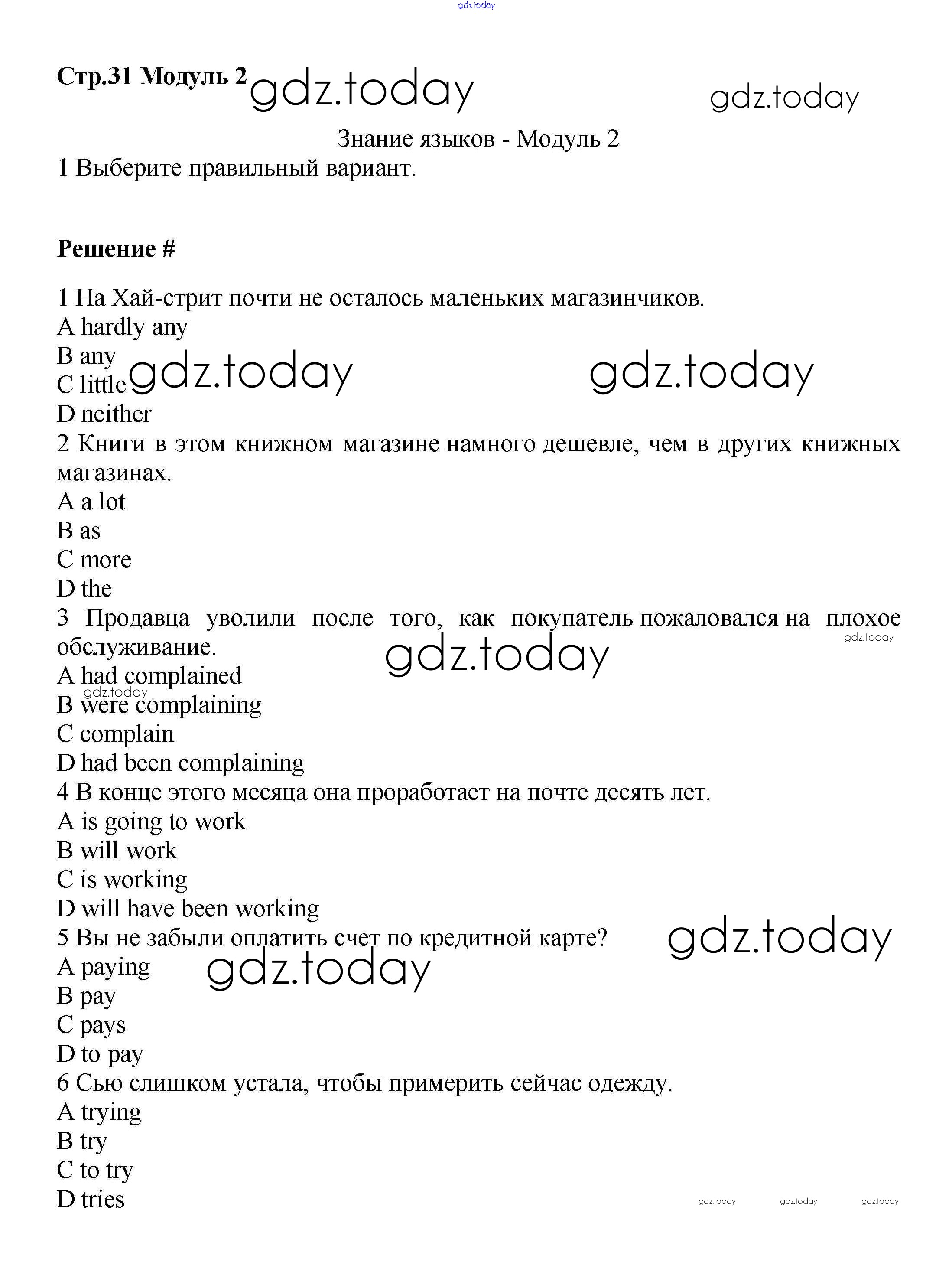 Ответы к Страницы (решение) 31 Рабочей тетради по Английскому языку для 8 класса Баранова, Дули Углубленный уровень Просвещение Starlight 2015