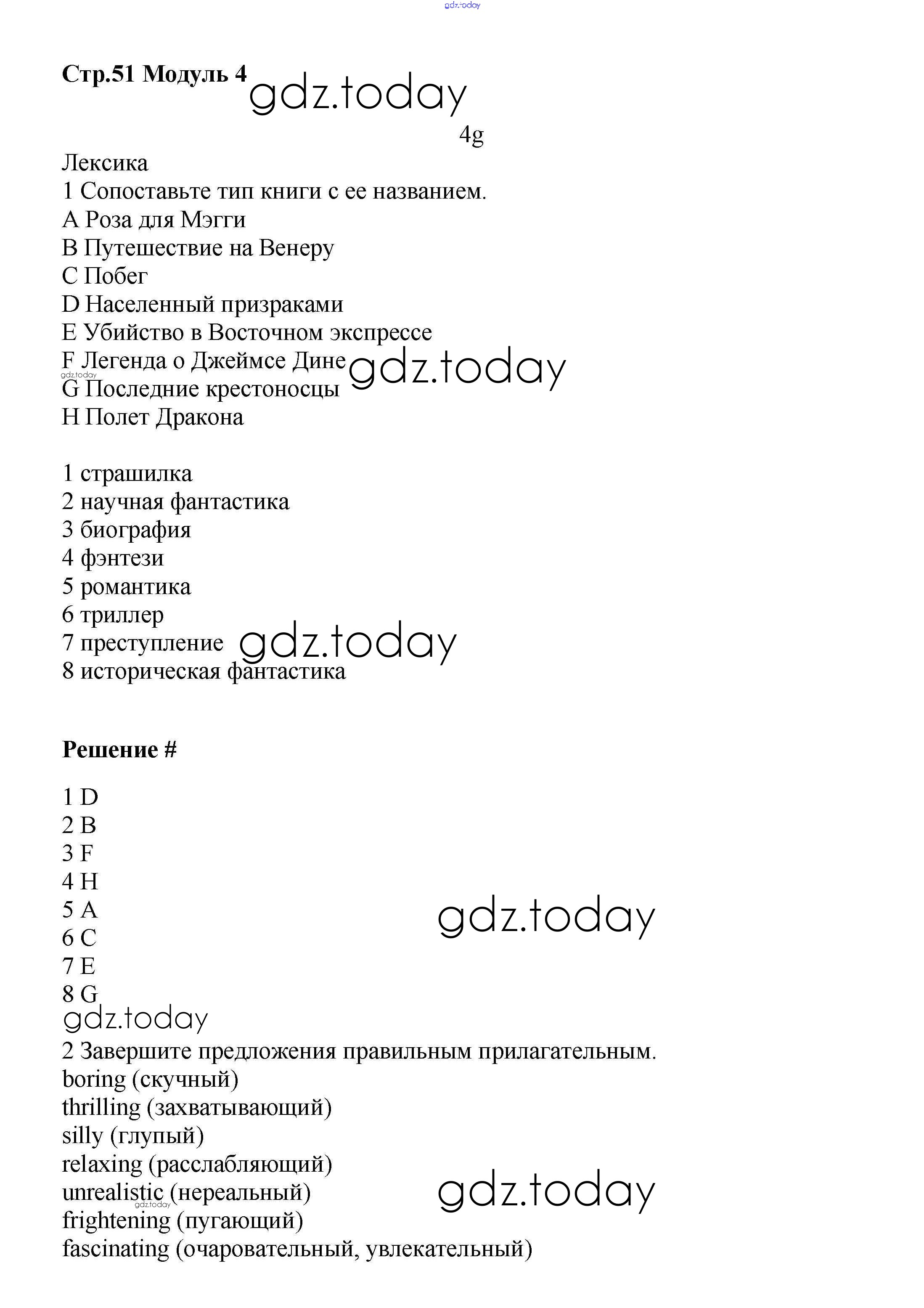 Ответы к Страницы (решение) 51 Рабочей тетради по Английскому языку для 8 класса Баранова, Дули Углубленный уровень Просвещение Starlight 2015