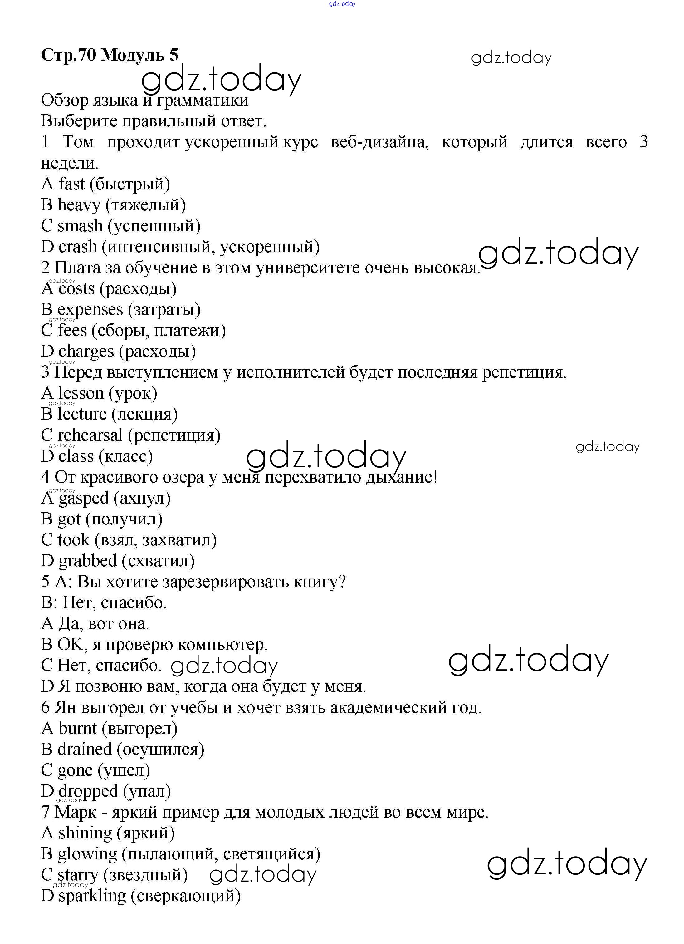 Ответы к Страницы (решение) 70 Рабочей тетради по Английскому языку для 8 класса Баранова, Дули Углубленный уровень Просвещение Starlight 2015