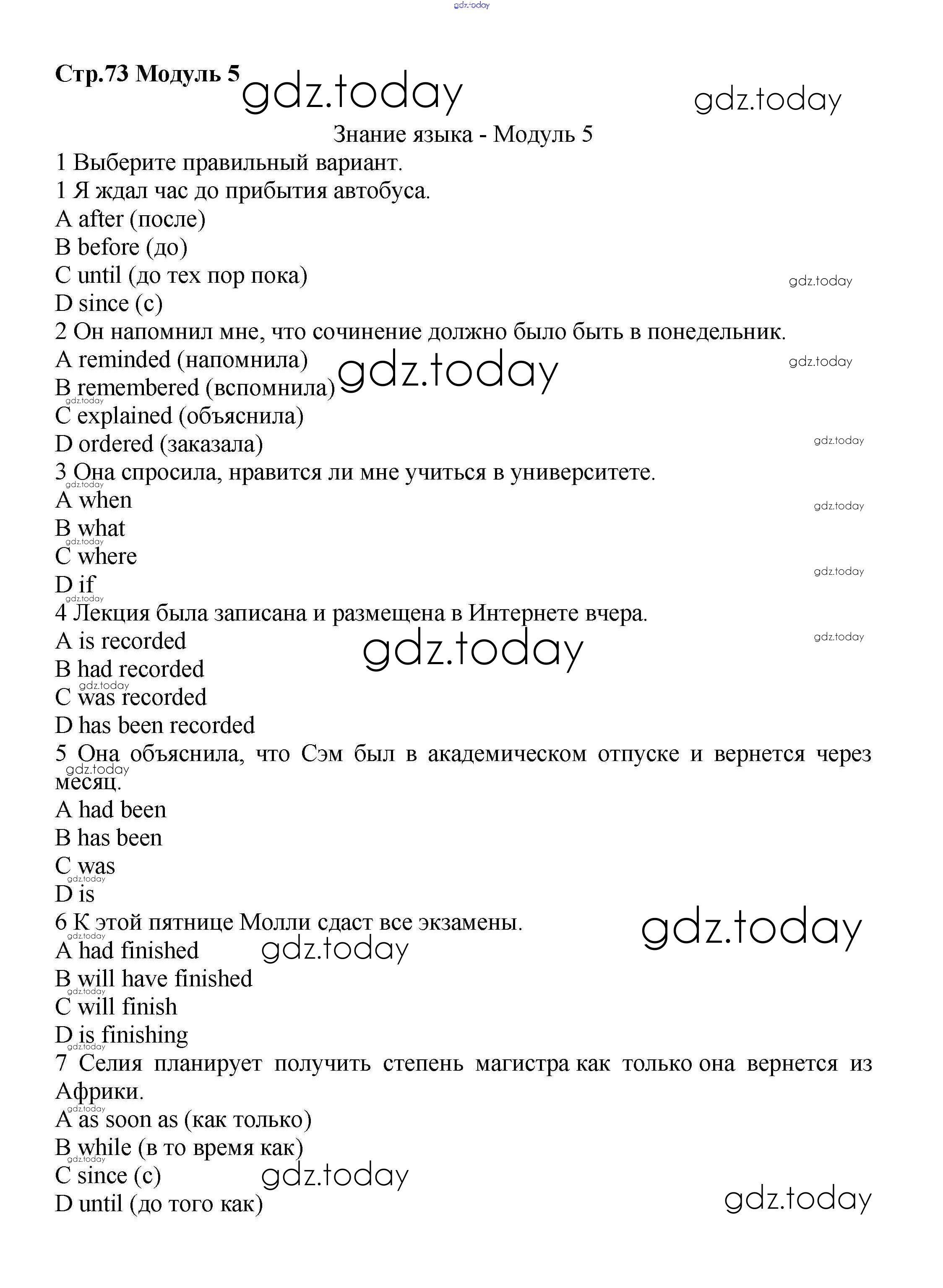Ответы к Страницы (решение) 73 Рабочей тетради по Английскому языку для 8 класса Баранова, Дули Углубленный уровень Просвещение Starlight 2015