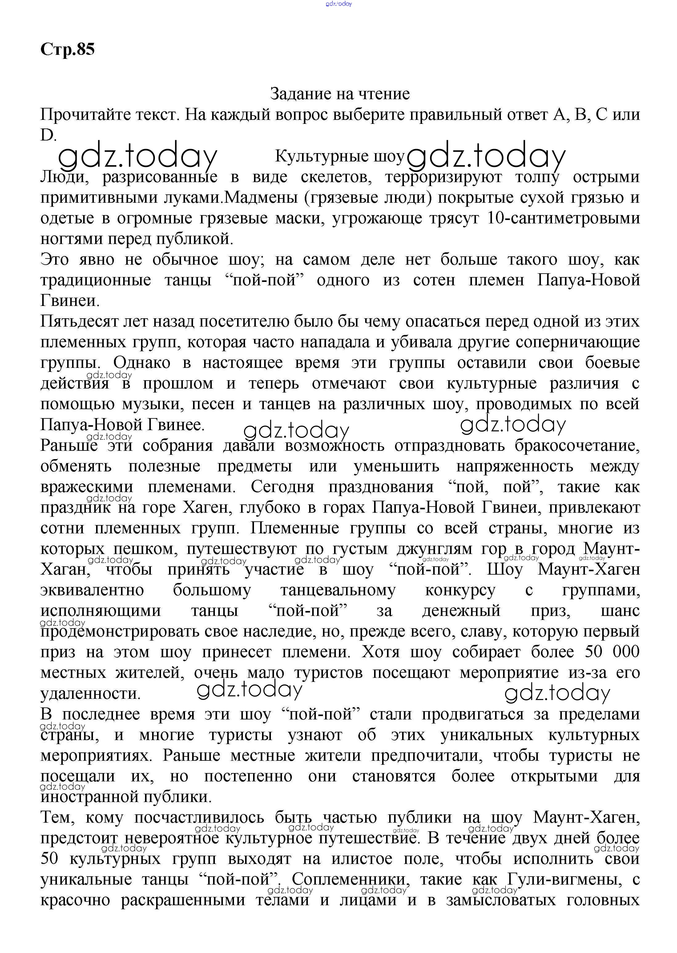 Ответы к Страницы (решение) 85 Рабочей тетради по Английскому языку для 8 класса Баранова, Дули Углубленный уровень Просвещение Starlight 2015