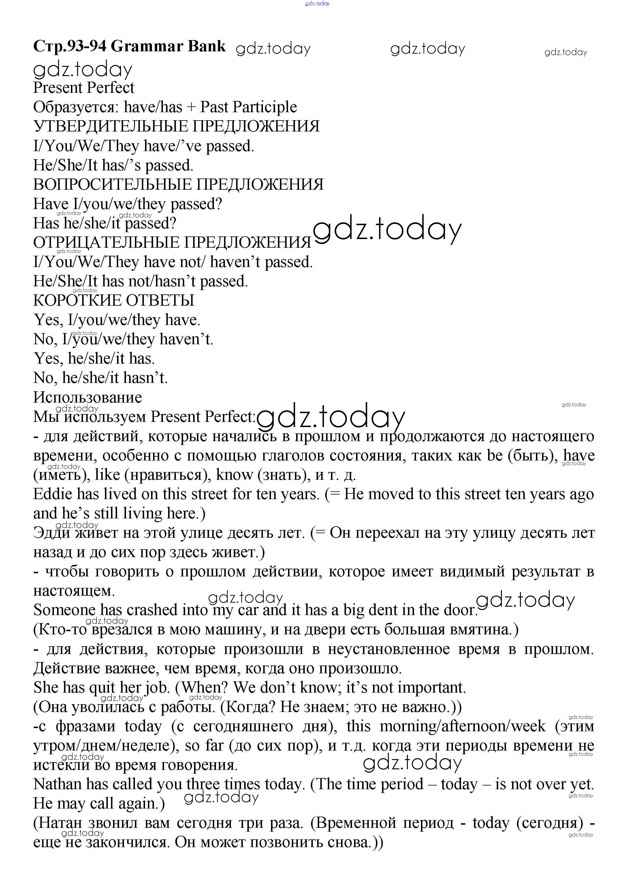На страницах сайта gdz.today вы найдете учебный и вспомогательный материал, направленный на улучшения знаний школьной программы. ГДЗ - онлайн мир знаний Страницы (решение) 93-94 Рабочей тетради по Английскому языку для 8 класса Баранова, Дули Углубленный уровень Просвещение Starlight 2015