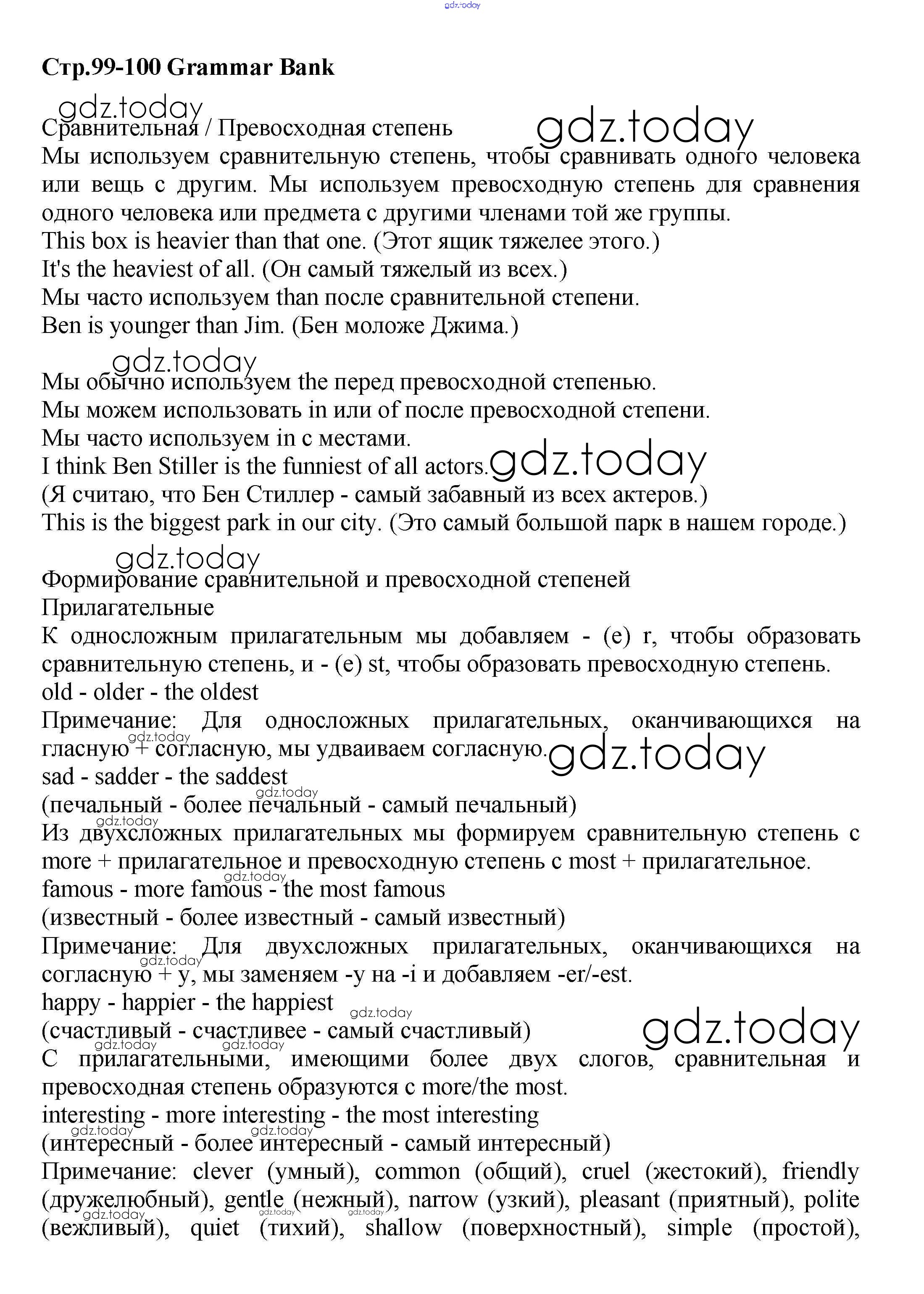На страницах сайта gdz.today вы найдете учебный и вспомогательный материал, направленный на улучшения знаний школьной программы. ГДЗ - онлайн мир знаний Страницы (решение) 99-100 Рабочей тетради по Английскому языку для 8 класса Баранова, Дули Углубленный уровень Просвещение Starlight 2015