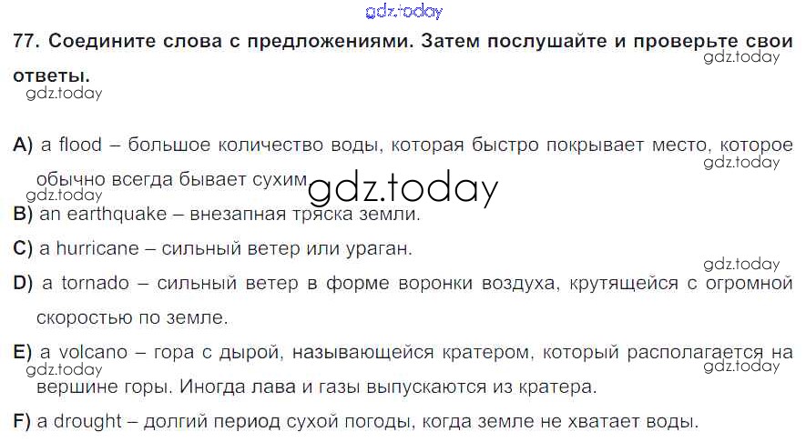На страницах сайта gdz.today вы найдете учебный и вспомогательный материал, направленный на улучшения знаний школьной программы. ГДЗ - онлайн мир знаний Section 5 Решение к Unit 1 77 Учебнику по Английскому языку для 8 класса Биболетова, Трубанева Титул, Дрофа Enjoy English 2015, 2017