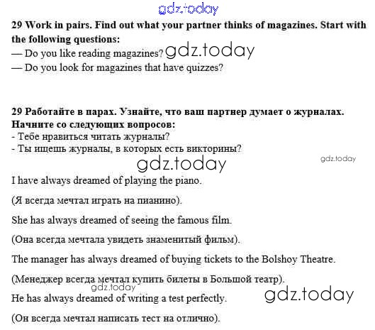 На страницах сайта gdz.today вы найдете учебный и вспомогательный материал, направленный на улучшения знаний школьной программы. ГДЗ - онлайн мир знаний Section 2 Решение к Unit 3 29 Учебнику по Английскому языку для 8 класса Биболетова, Трубанева Титул, Дрофа Enjoy English 2015, 2017