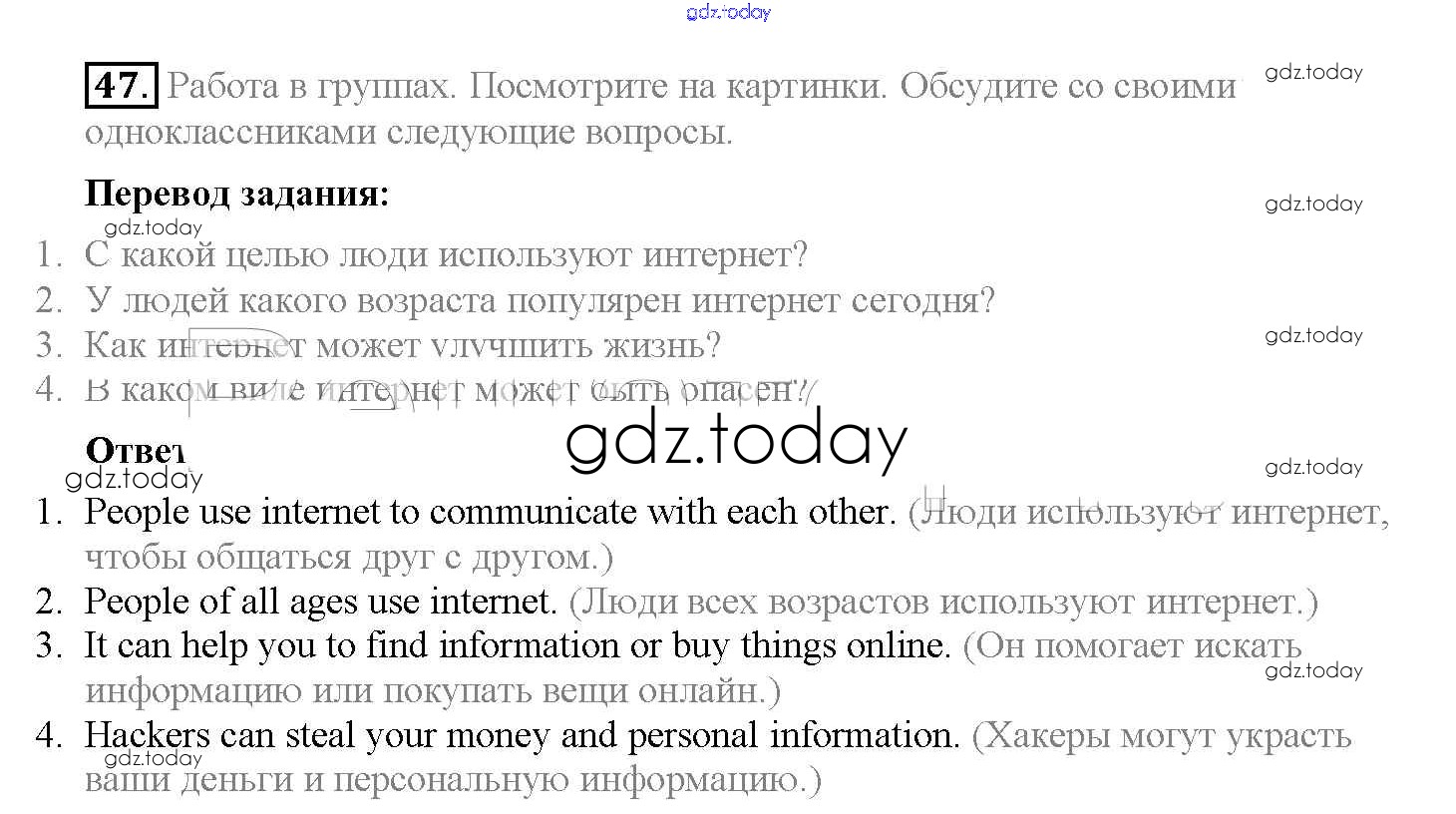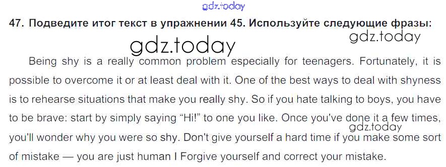 На страницах сайта gdz.today вы найдете учебный и вспомогательный материал, направленный на улучшения знаний школьной программы. ГДЗ - онлайн мир знаний Section 3 Решение к Unit 3 47 Учебнику по Английскому языку для 8 класса Биболетова, Трубанева Титул, Дрофа Enjoy English 2015, 2017