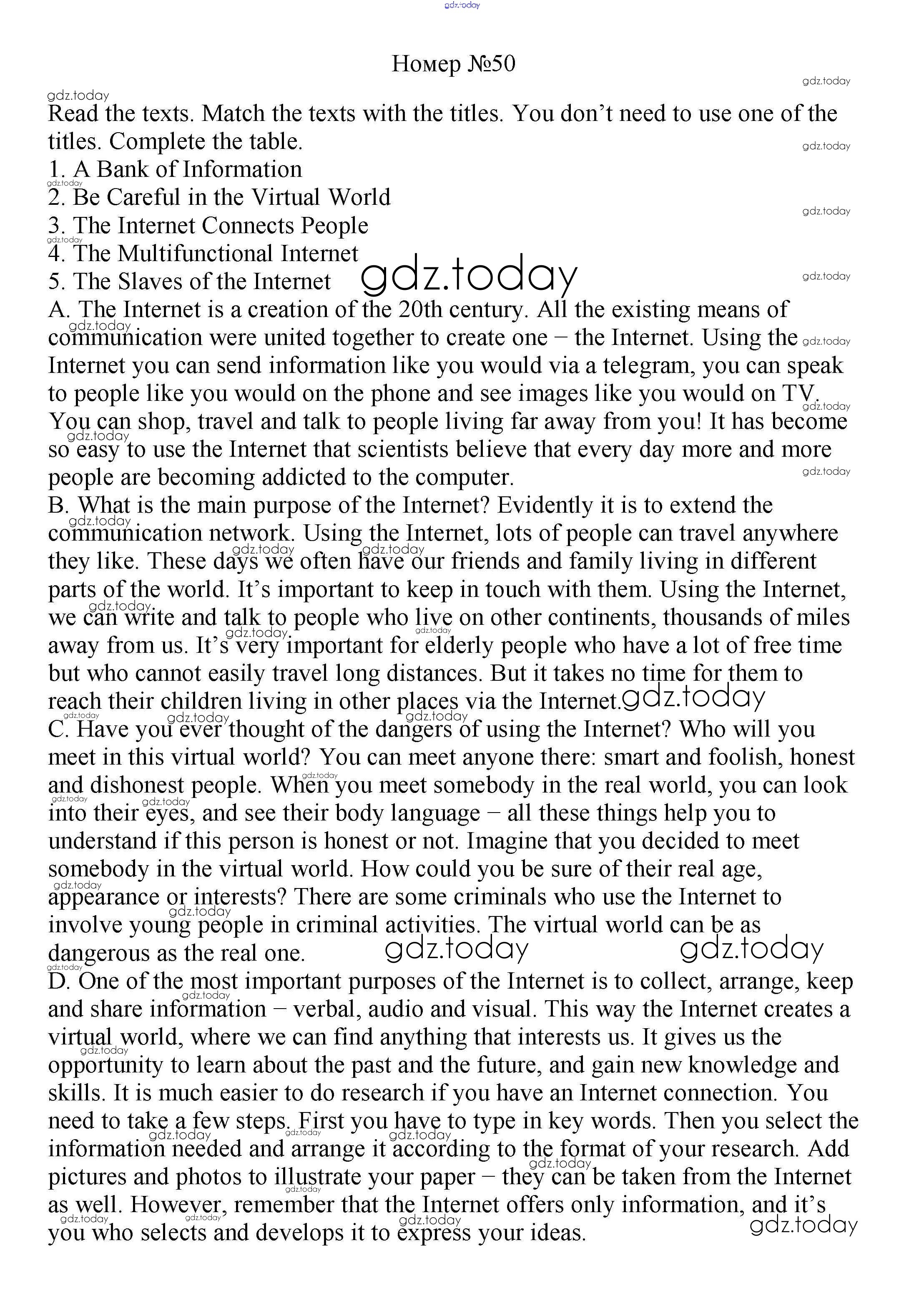 На страницах сайта gdz.today вы найдете учебный и вспомогательный материал, направленный на улучшения знаний школьной программы. ГДЗ - онлайн мир знаний Section 4 Решение к Unit 3 50 Учебнику по Английскому языку для 8 класса Биболетова, Трубанева Титул, Дрофа Enjoy English 2015, 2017