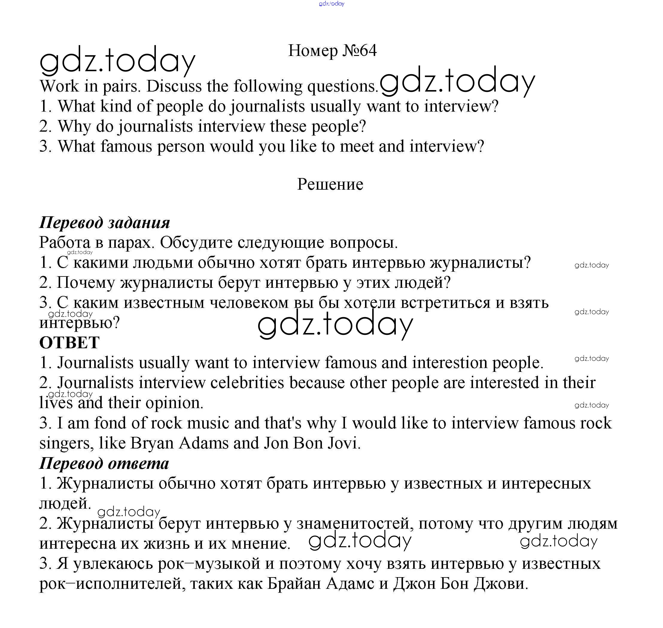 На страницах сайта gdz.today вы найдете учебный и вспомогательный материал, направленный на улучшения знаний школьной программы. ГДЗ - онлайн мир знаний Section 5 Решение к Unit 3 64 Учебнику по Английскому языку для 8 класса Биболетова, Трубанева Титул, Дрофа Enjoy English 2015, 2017