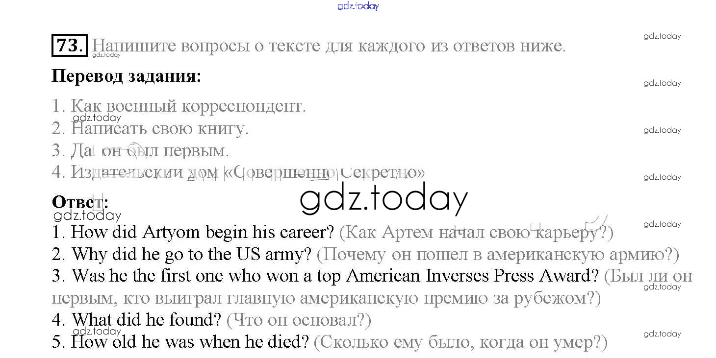 На страницах сайта gdz.today вы найдете учебный и вспомогательный материал, направленный на улучшения знаний школьной программы. ГДЗ - онлайн мир знаний Section 5 Решение к Unit 3 73 Учебнику по Английскому языку для 8 класса Биболетова, Трубанева Титул, Дрофа Enjoy English 2015, 2017