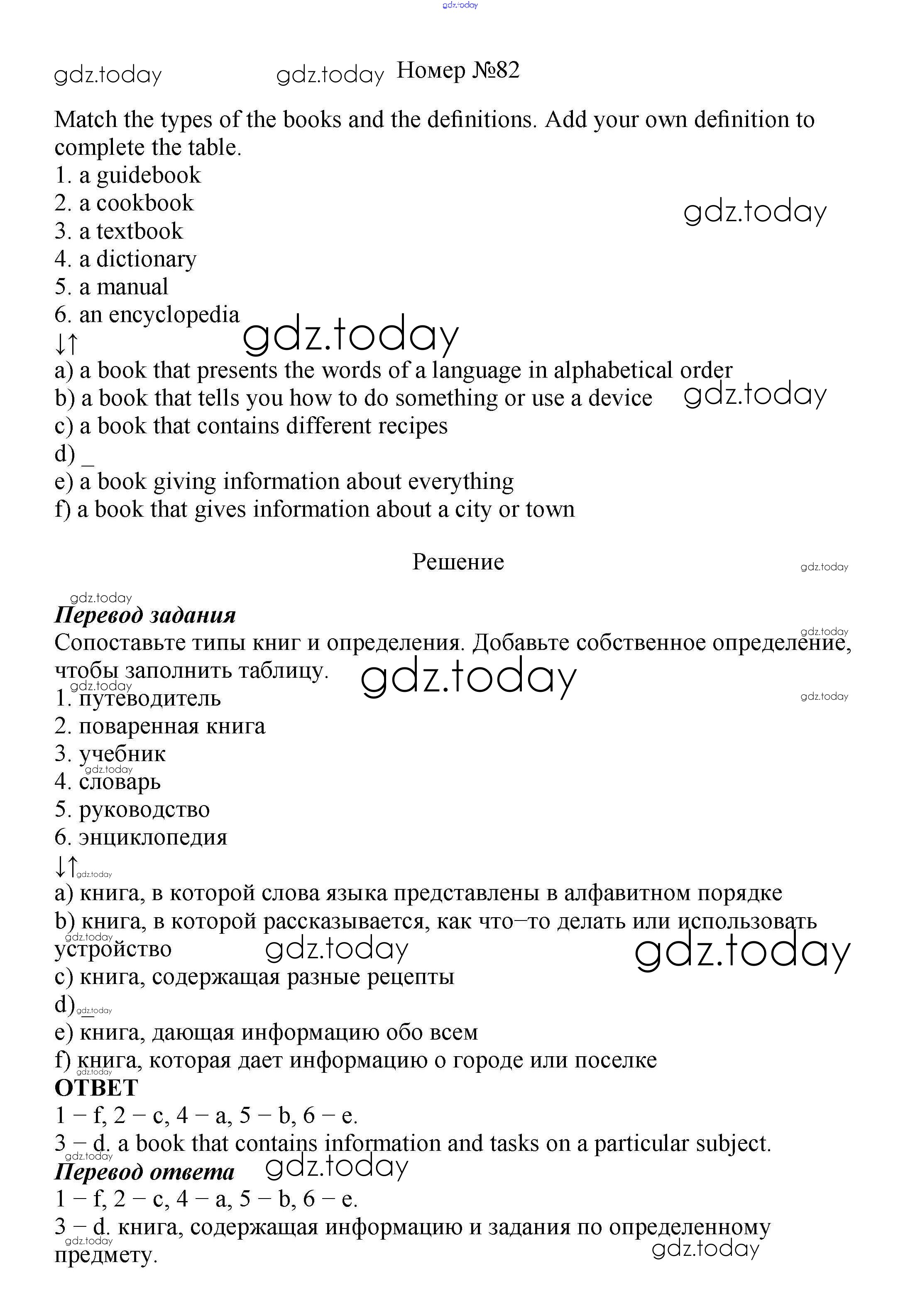 На страницах сайта gdz.today вы найдете учебный и вспомогательный материал, направленный на улучшения знаний школьной программы. ГДЗ - онлайн мир знаний Section 6 Решение к Unit 3 82 Учебнику по Английскому языку для 8 класса Биболетова, Трубанева Титул, Дрофа Enjoy English 2015, 2017