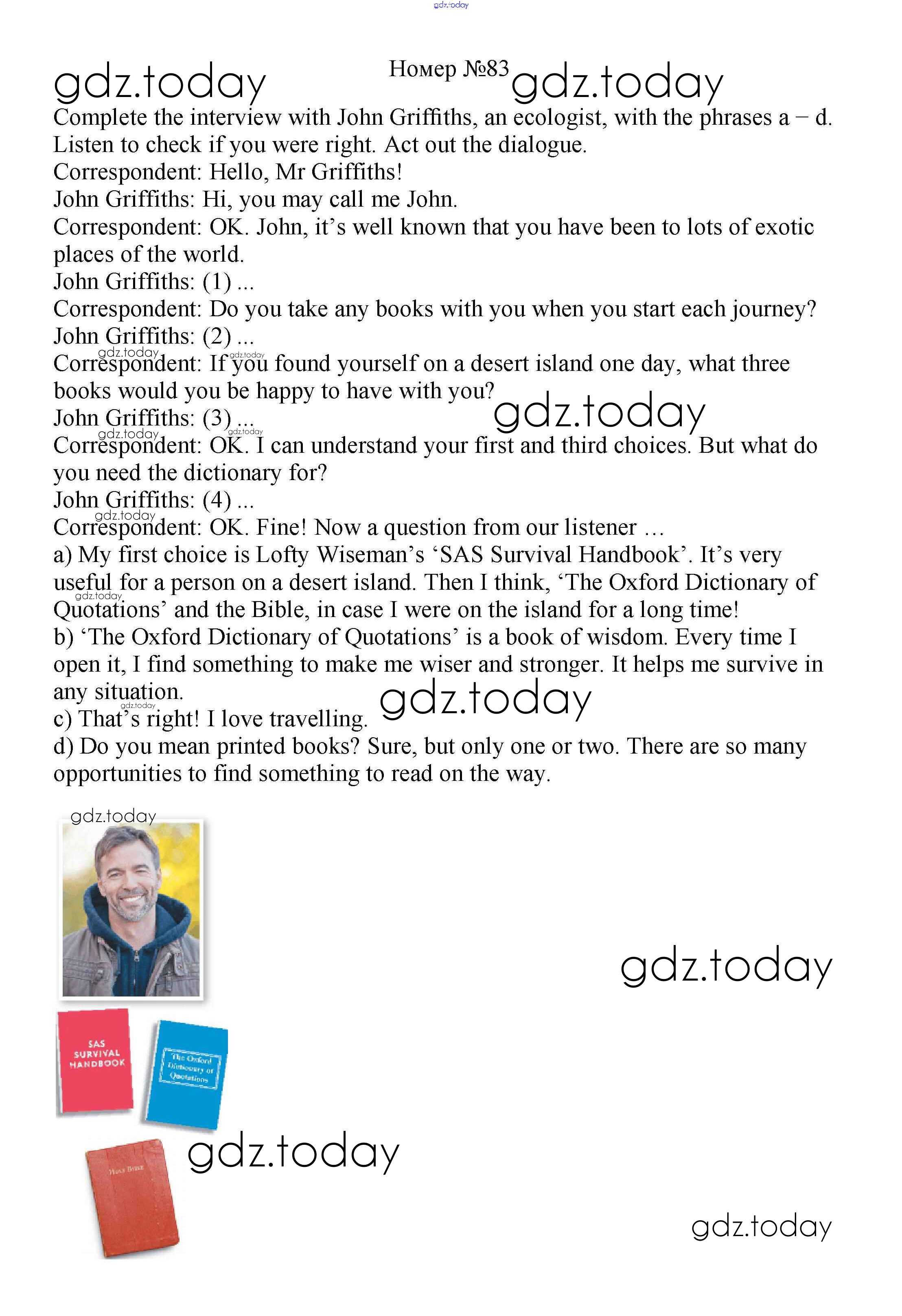 На страницах сайта gdz.today вы найдете учебный и вспомогательный материал, направленный на улучшения знаний школьной программы. ГДЗ - онлайн мир знаний Section 6 Решение к Unit 3 83 Учебнику по Английскому языку для 8 класса Биболетова, Трубанева Титул, Дрофа Enjoy English 2015, 2017