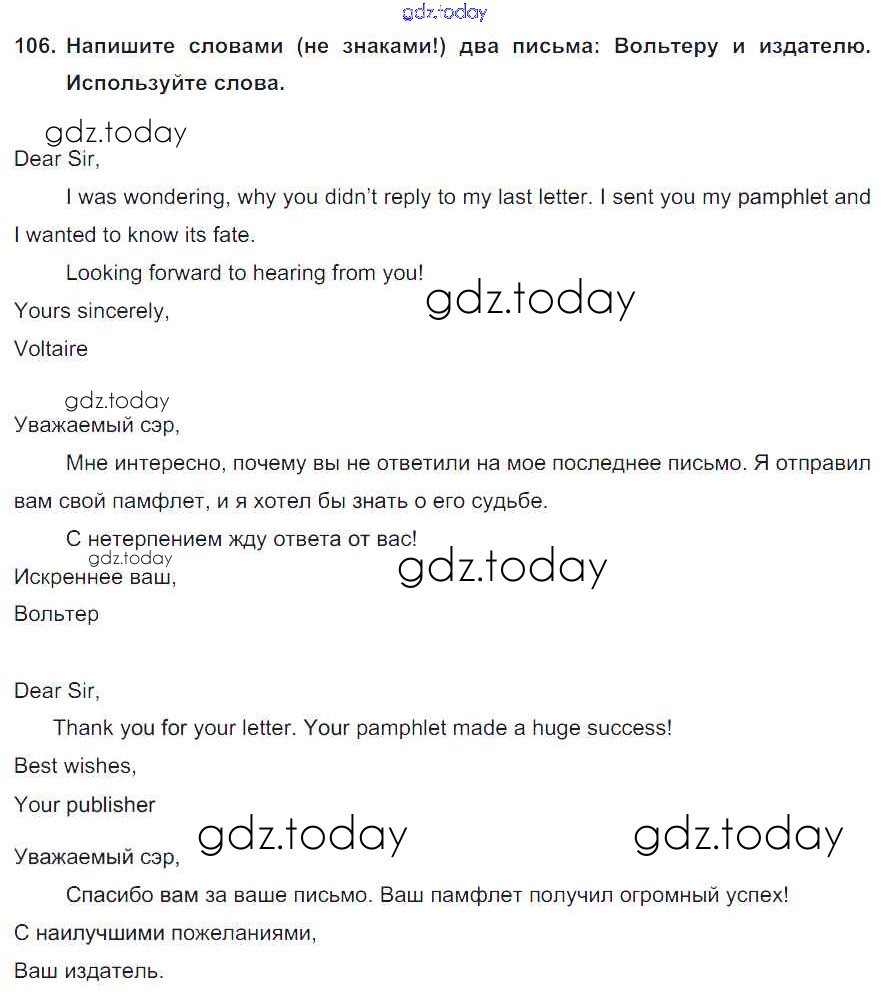 На страницах сайта gdz.today вы найдете учебный и вспомогательный материал, направленный на улучшения знаний школьной программы. ГДЗ - онлайн мир знаний Section 8 Решение к Unit 3 106 Учебнику по Английскому языку для 8 класса Биболетова, Трубанева Титул, Дрофа Enjoy English 2015, 2017