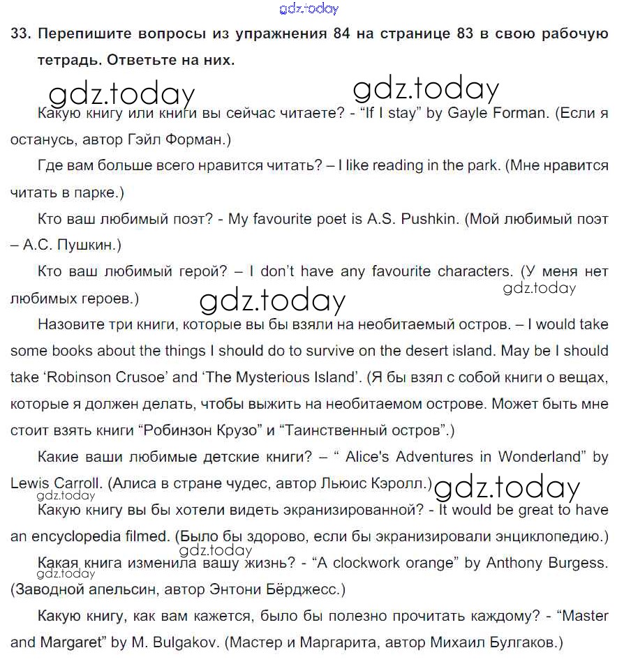 На страницах сайта gdz.today вы найдете учебный и вспомогательный материал, направленный на улучшения знаний школьной программы. ГДЗ - онлайн мир знаний Homework Решение к Unit 3 33 Учебнику по Английскому языку для 8 класса Биболетова, Трубанева Титул, Дрофа Enjoy English 2015, 2017