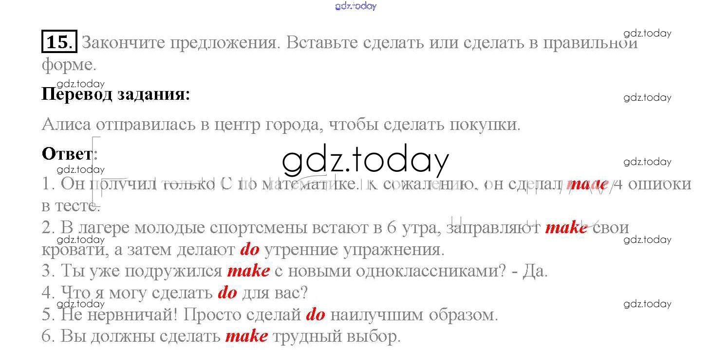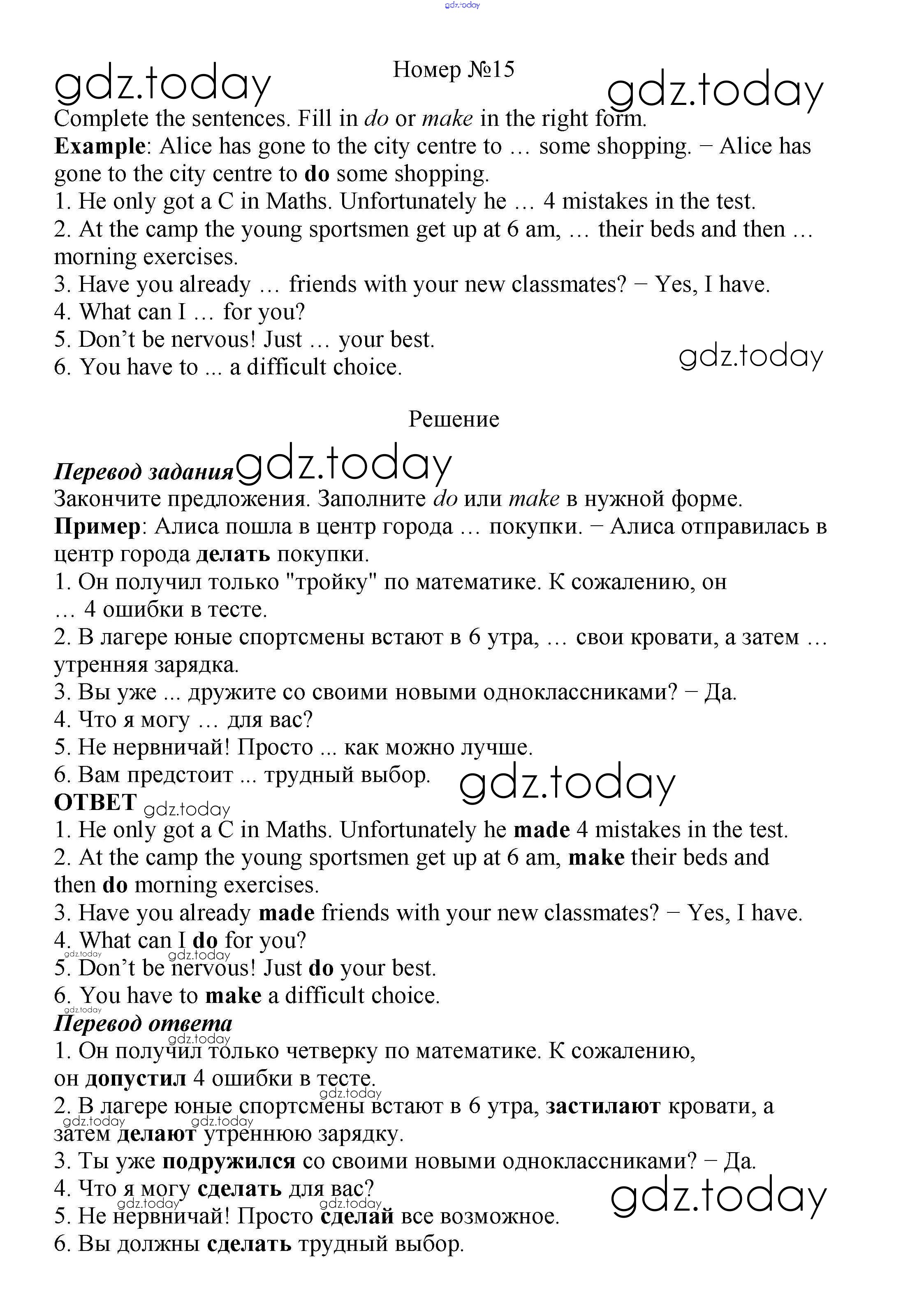 На страницах сайта gdz.today вы найдете учебный и вспомогательный материал, направленный на улучшения знаний школьной программы. ГДЗ - онлайн мир знаний Homework Решение к Unit 4 15 Учебнику по Английскому языку для 8 класса Биболетова, Трубанева Титул, Дрофа Enjoy English 2015, 2017