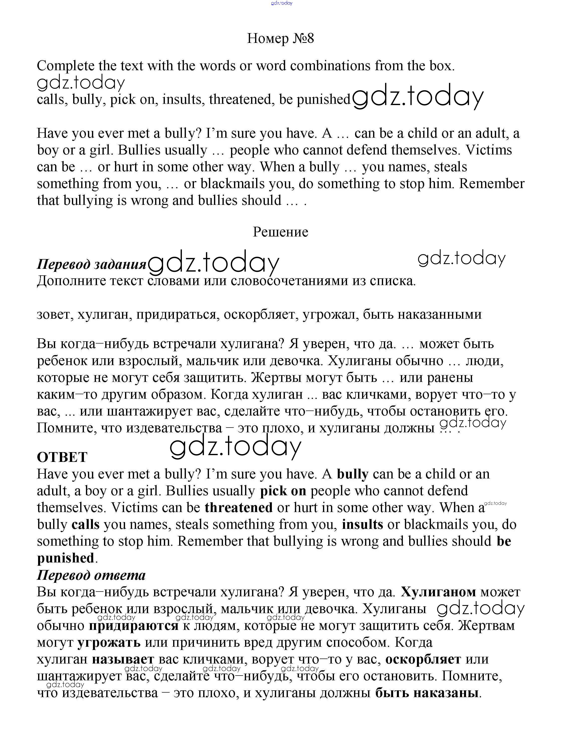 На страницах сайта gdz.today вы найдете учебный и вспомогательный материал, направленный на улучшения знаний школьной программы. ГДЗ - онлайн мир знаний Homework Решение к Unit 4 8 Учебнику по Английскому языку для 8 класса Биболетова, Трубанева Титул, Дрофа Enjoy English 2015, 2017
