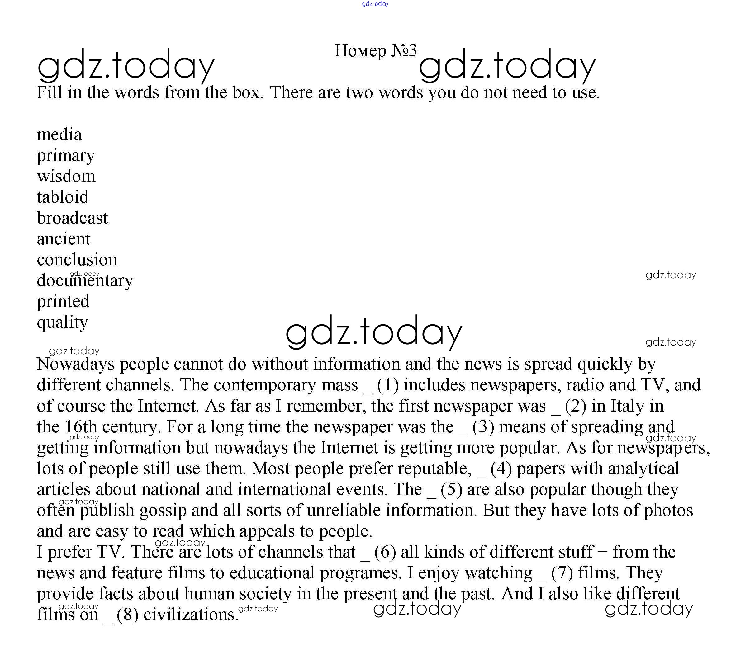 На страницах сайта gdz.today вы найдете учебный и вспомогательный материал, направленный на улучшения знаний школьной программы. ГДЗ - онлайн мир знаний Test Unit 3 (решение) 3 Рабочей тетради по Английскому языку для 8 класса Биболетова, Бабушис Титул, Аст/Астрель Enjoy English 2015, 2016