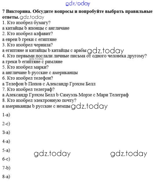 На страницах сайта gdz.today вы найдете учебный и вспомогательный материал, направленный на улучшения знаний школьной программы. ГДЗ - онлайн мир знаний Урок 3-4 Решение к Unit 3. Means of communication through the centuries 7 Учебнику по Английскому языку для 8 класса Кауфман Титул Happy English 2012