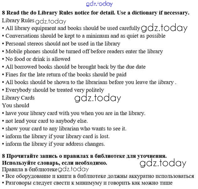 На страницах сайта gdz.today вы найдете учебный и вспомогательный материал, направленный на улучшения знаний школьной программы. ГДЗ - онлайн мир знаний Урок 5-6 Решение к Unit 5. Find your way in the world of information 8 Учебнику по Английскому языку для 8 класса Кауфман Титул Happy English 2012