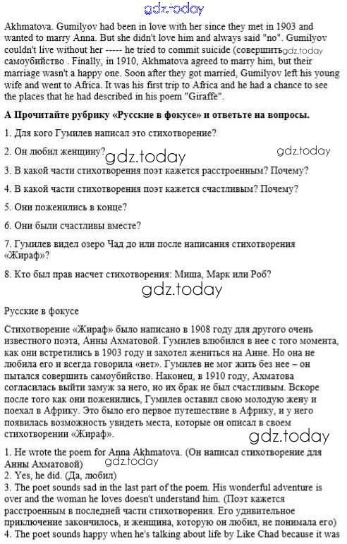 На страницах сайта gdz.today вы найдете учебный и вспомогательный материал, направленный на улучшения знаний школьной программы. ГДЗ - онлайн мир знаний Урок 6 Решение к Unit 7. Russian writers and poets A Учебнику по Английскому языку для 8 класса Кауфман Титул Happy English 2012